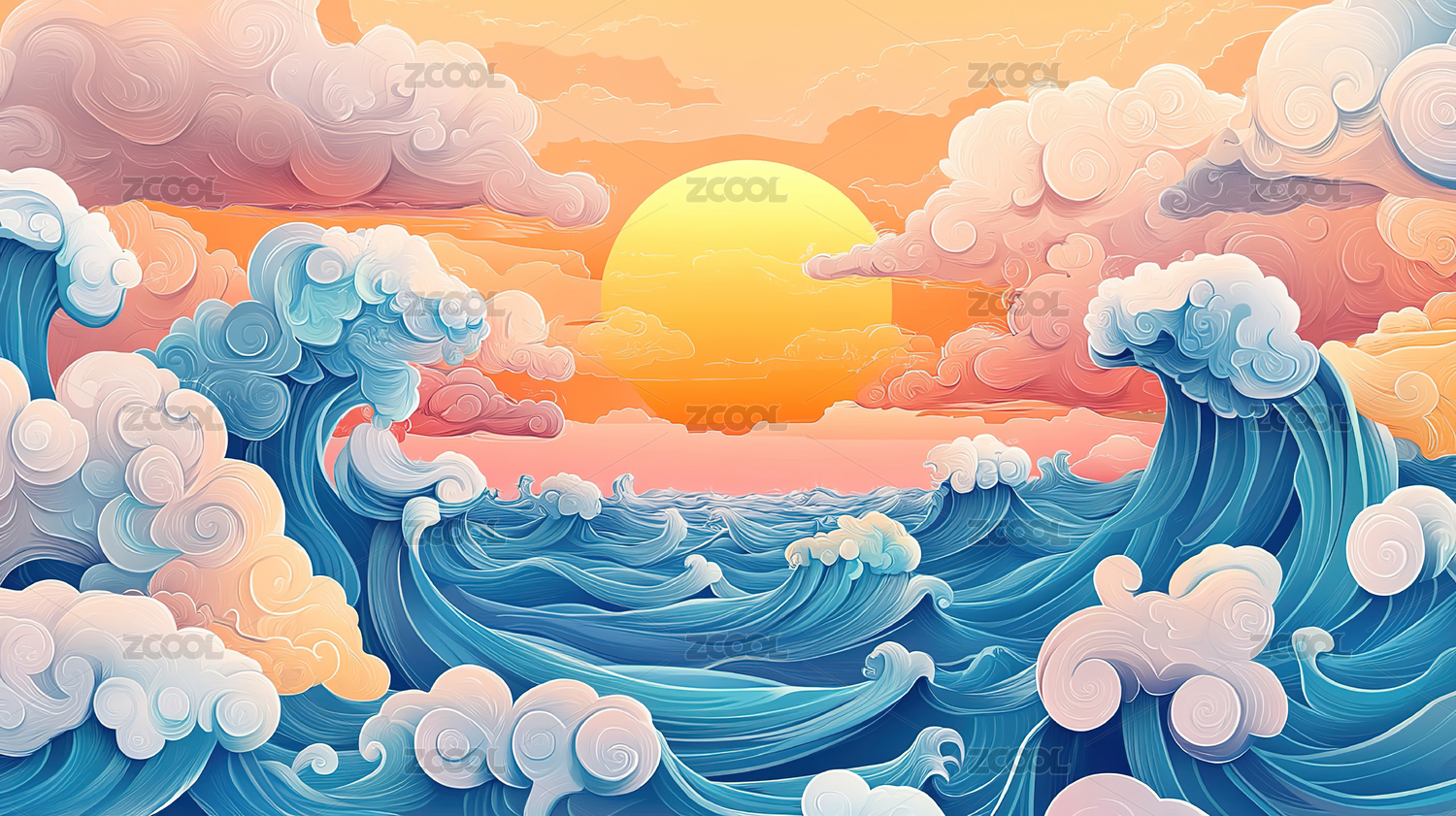 水花海浪背景插画夏天凉爽概念大暑节气插图