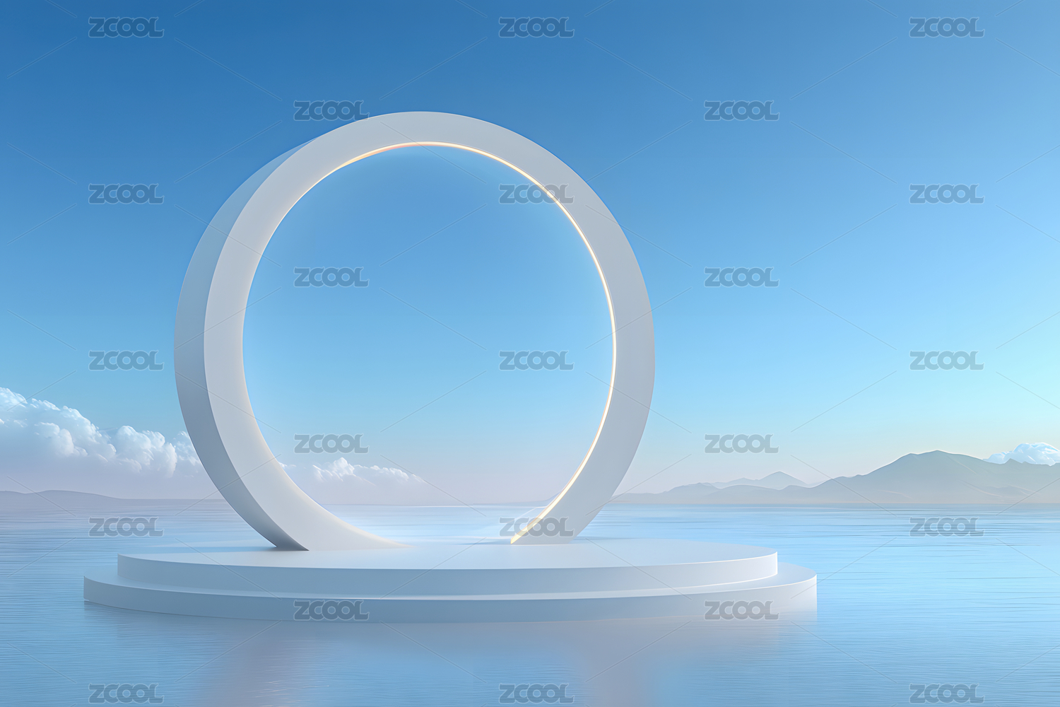 蔚蓝天空下的白色展示台