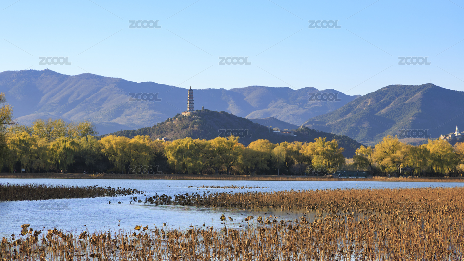 北京颐和园昆明湖与玉泉山佛塔