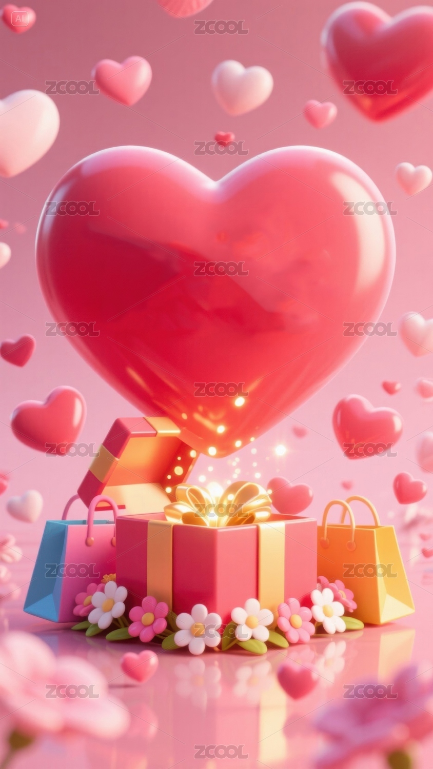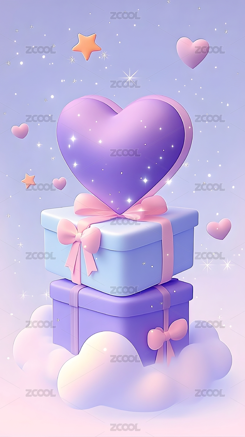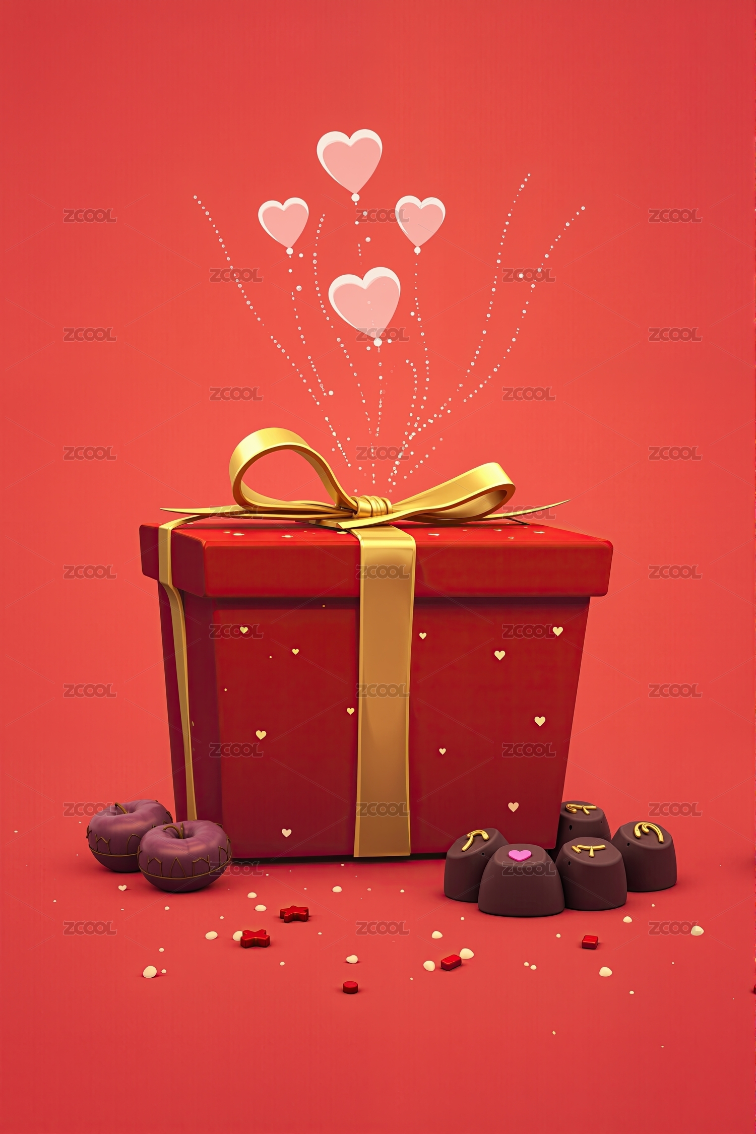 情人节儿童节七夕礼物礼品盒3D卡通插画
