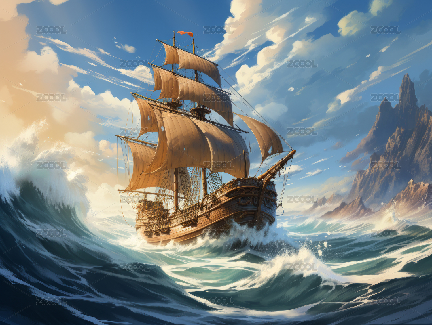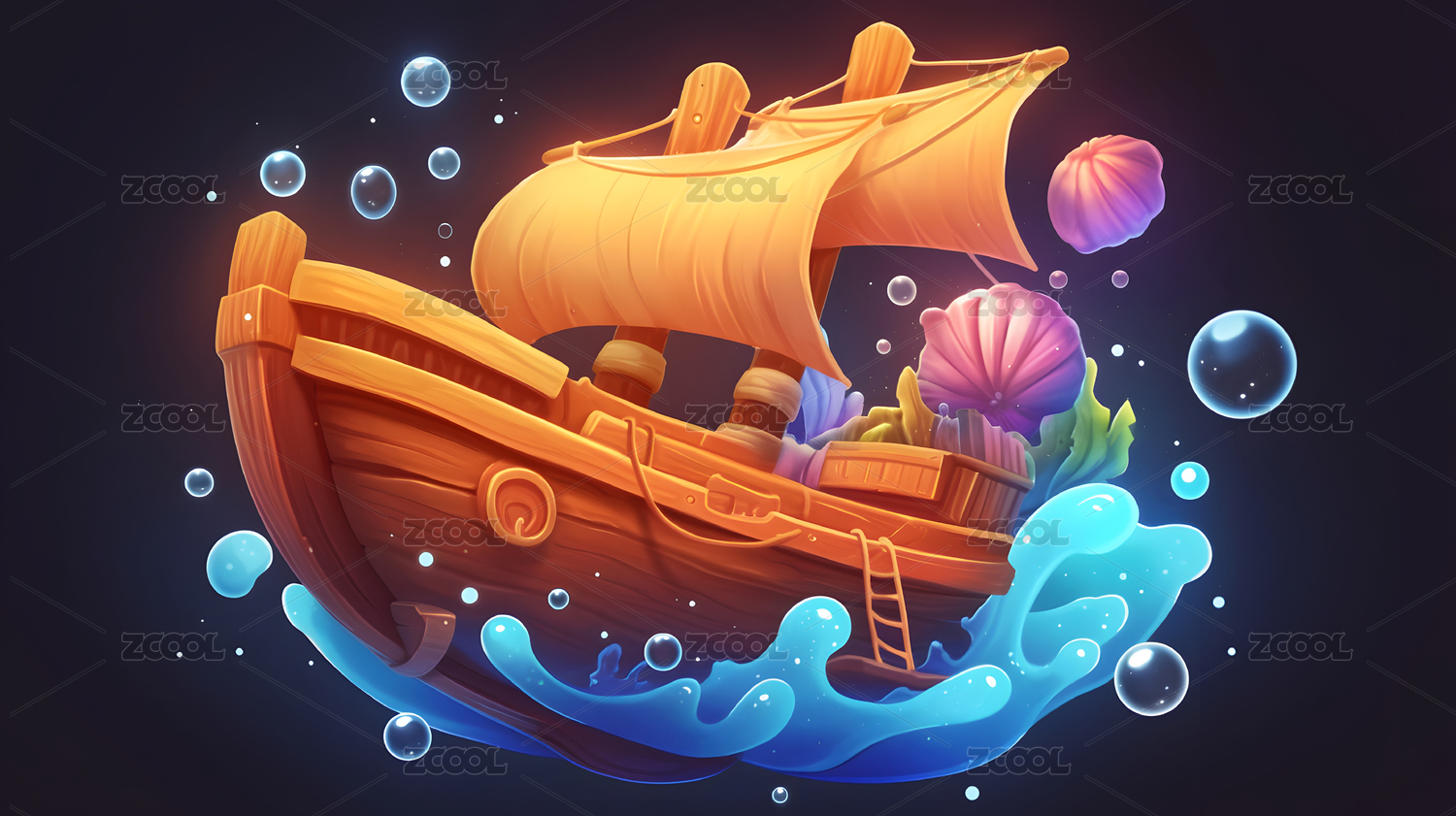 Q版,卡通,船,海盗船,航行,海面,高清,帆船
