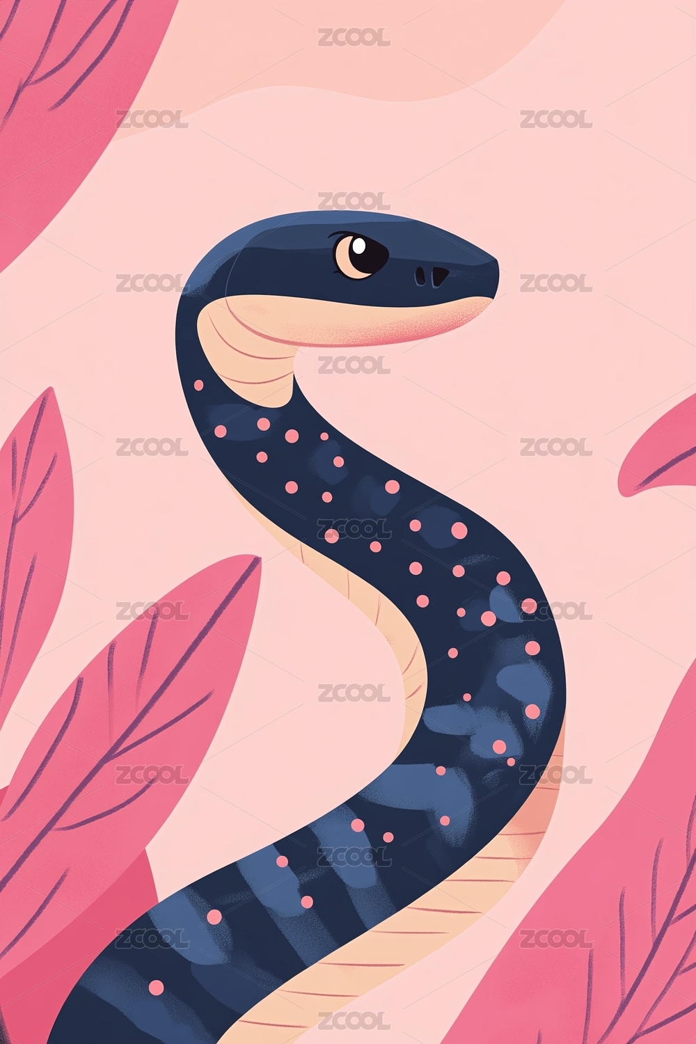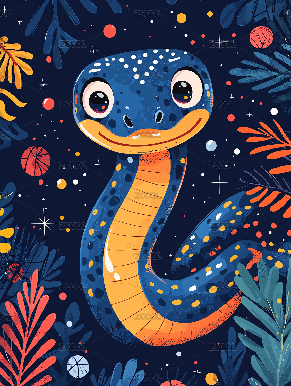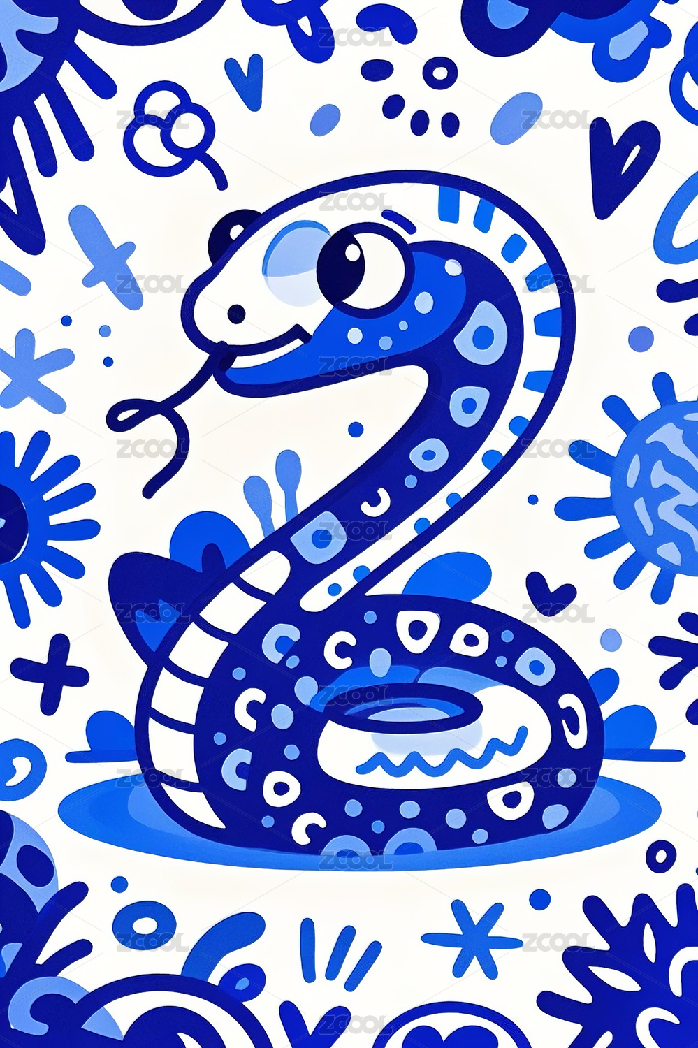 可爱儿童插画风格生肖蛇儿童涂鸦