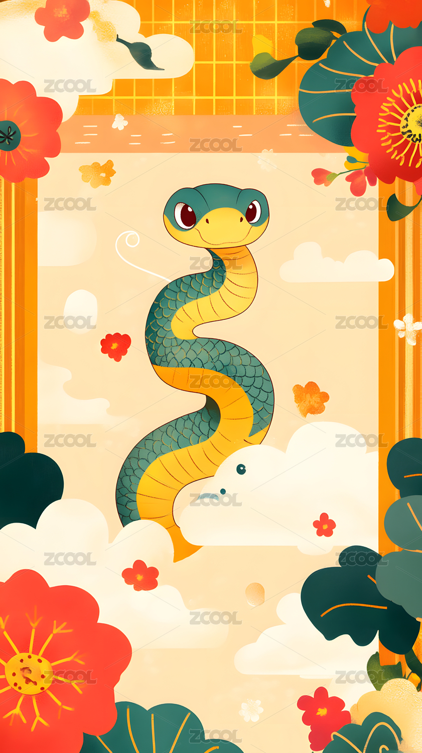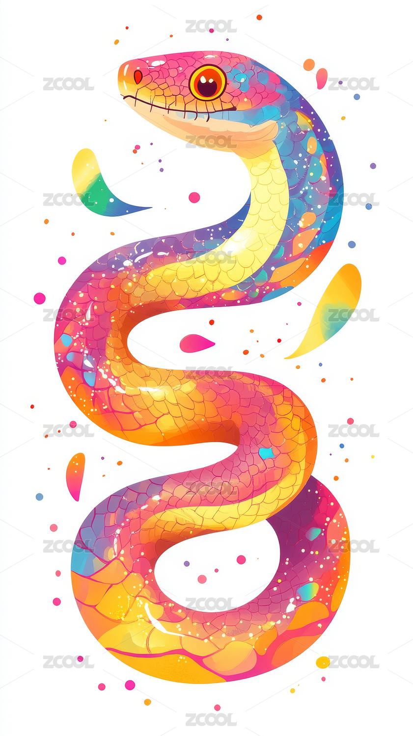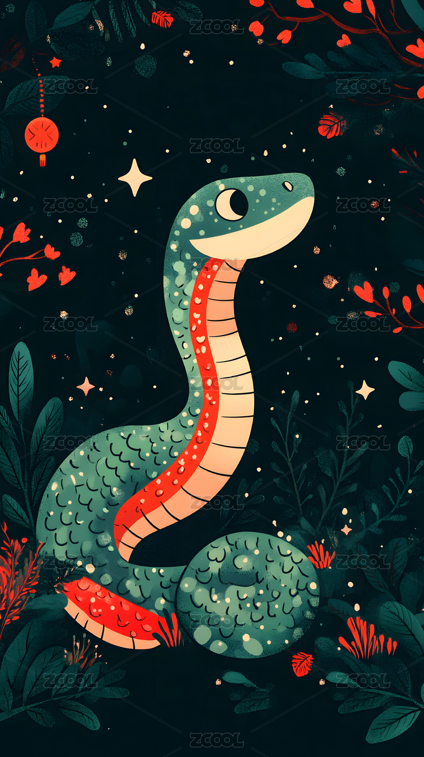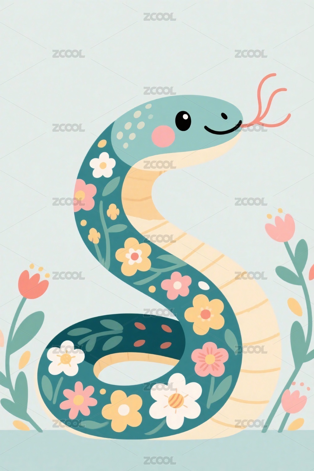 可爱儿童插画风格生肖蛇儿童涂鸦
