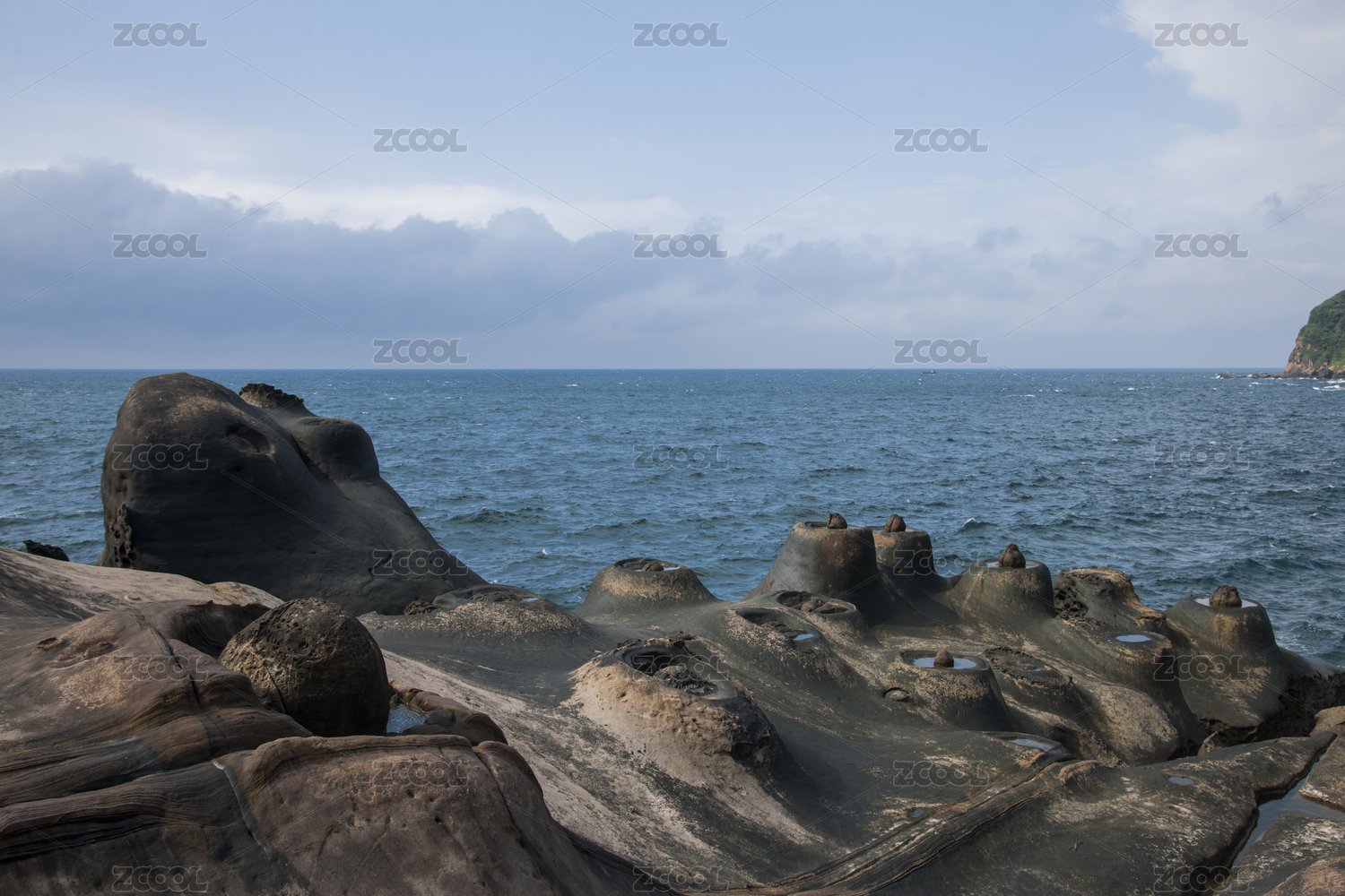 台湾,野柳地质公园,女王头,烛台石,棋盘石,海蚀洞,蕈状岩