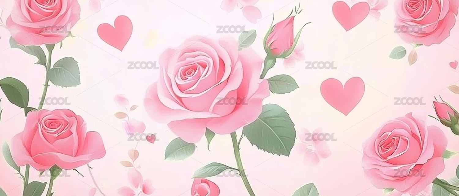 爱心与玫瑰花的浪漫背景