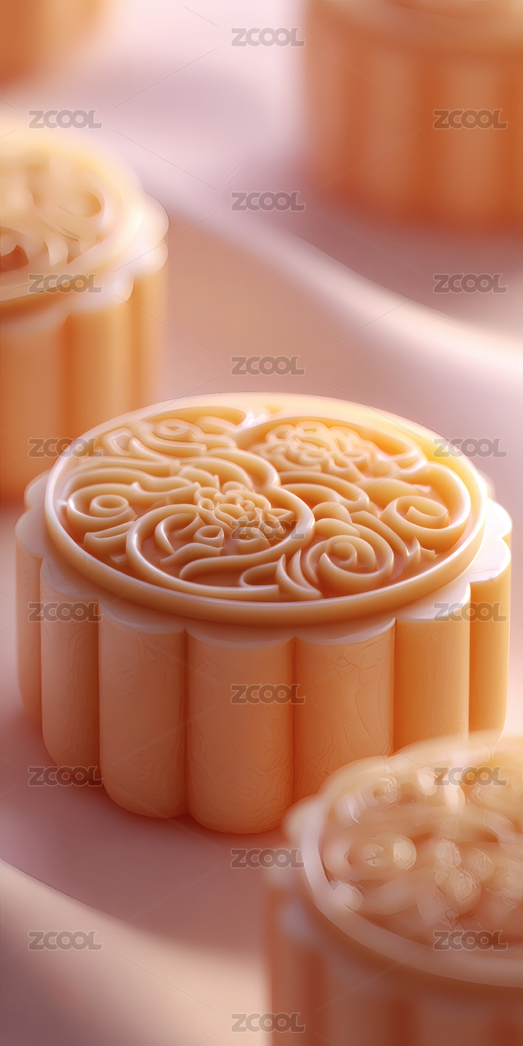 AIGC202403,中秋节,节日,月饼,美食,糕点,3D,图标,元素,黄色