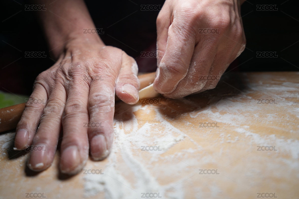 家庭美食制作手擀面皮饺子皮在厨房特写