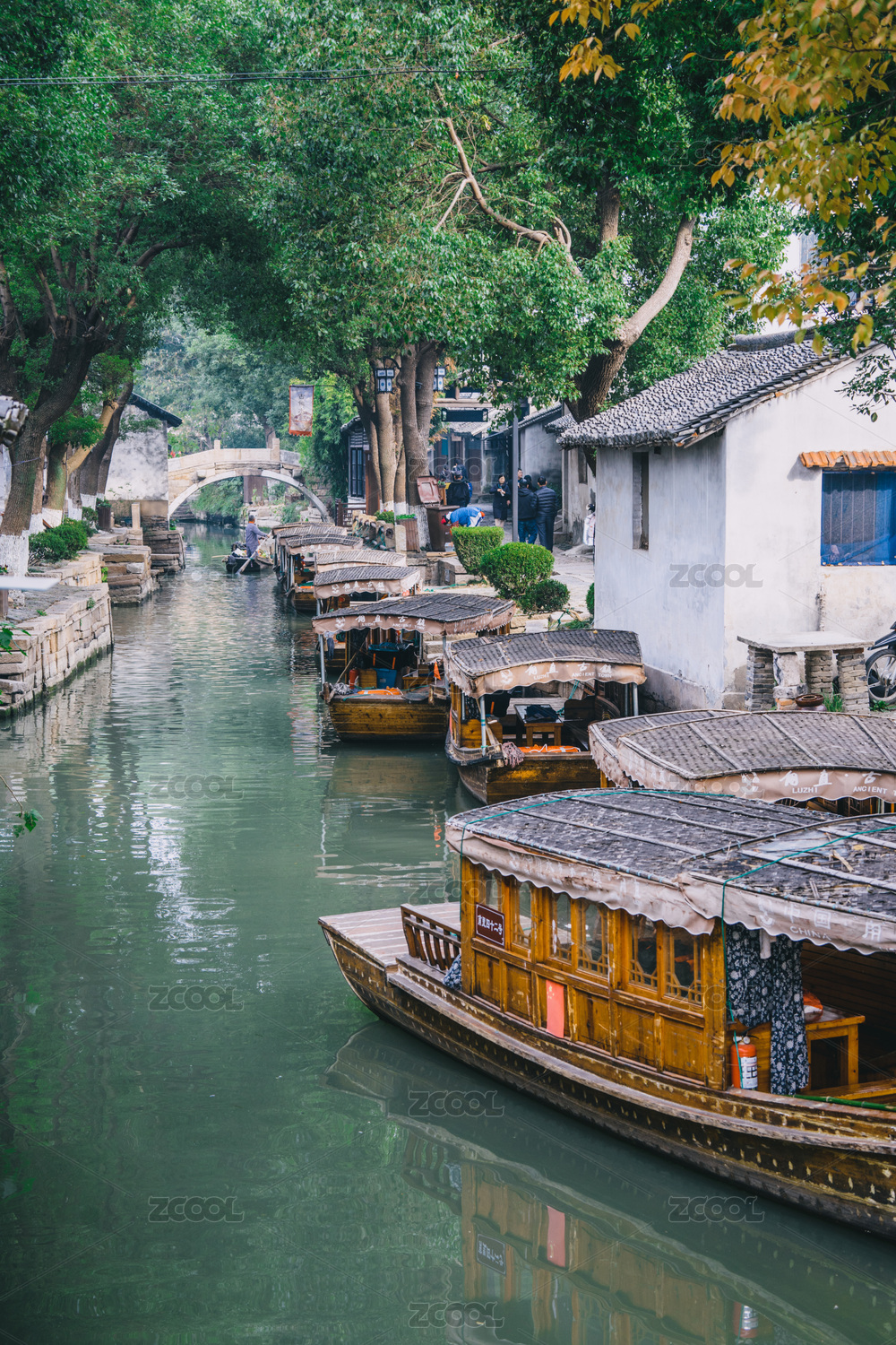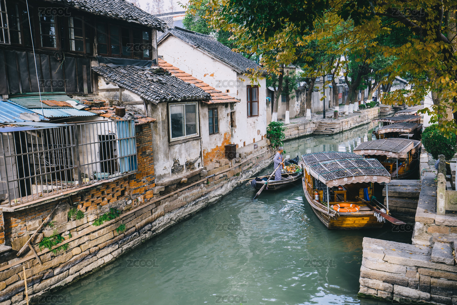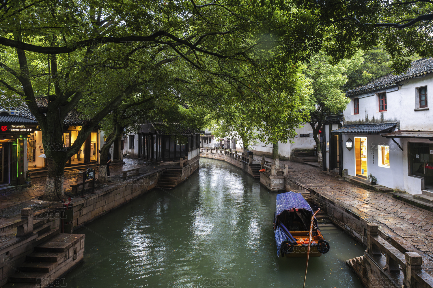 江苏省苏州市甪直古镇江南水乡游船乌篷船