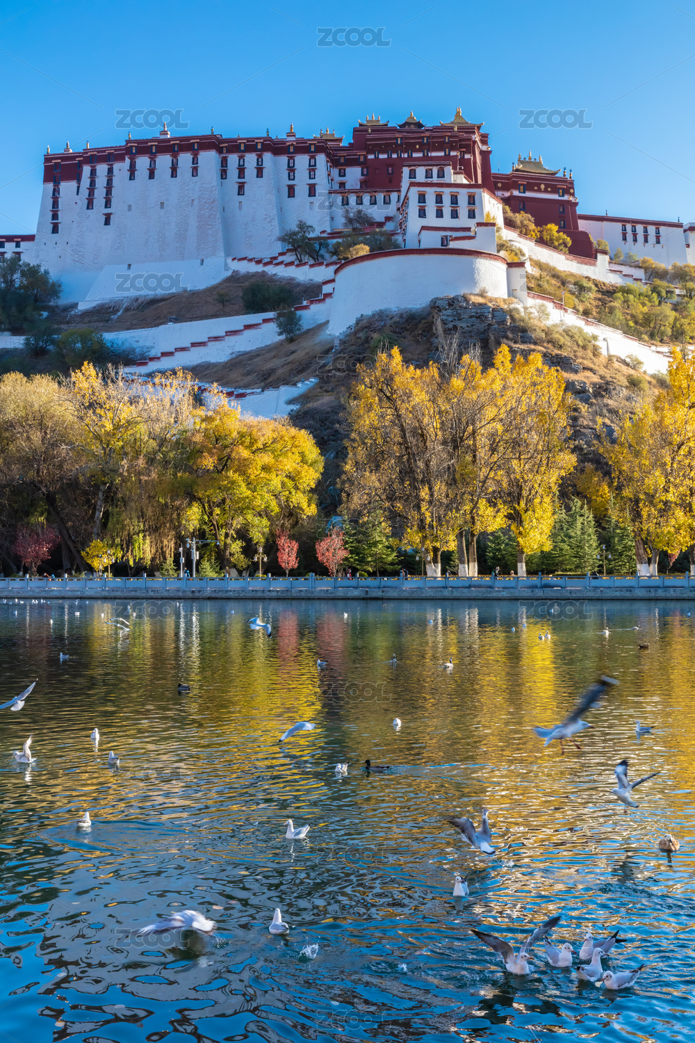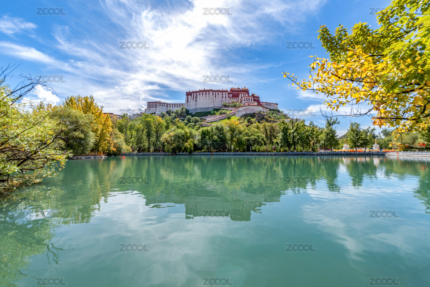 中国西藏布达拉宫后面的宗角禄康公园秋色
