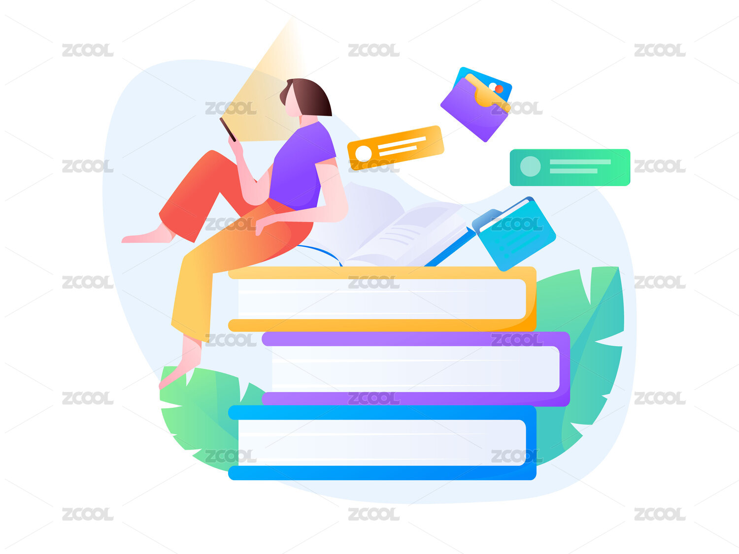 彩色,蓝色,绿色,黄色,矢量,描边,插画,看书,学习,书籍