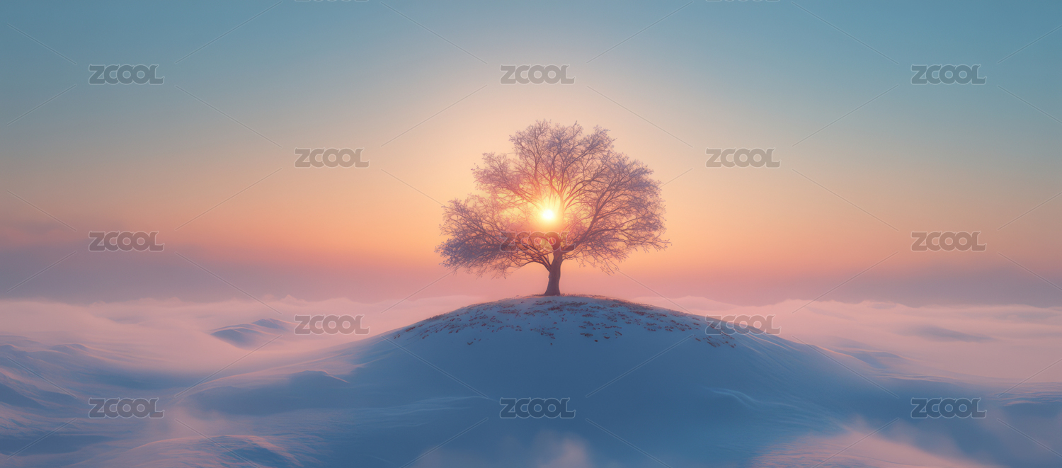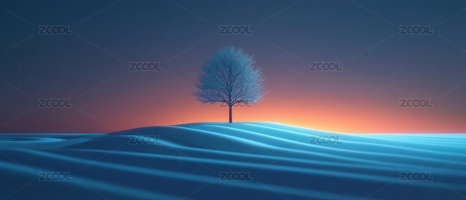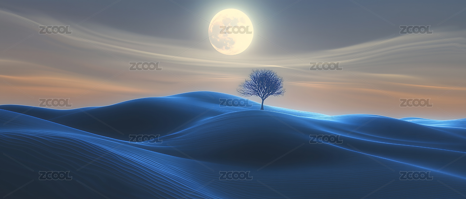 孤树,月亮,冬季,夜空,云彩,波浪,宁静,神秘,温暖,光线