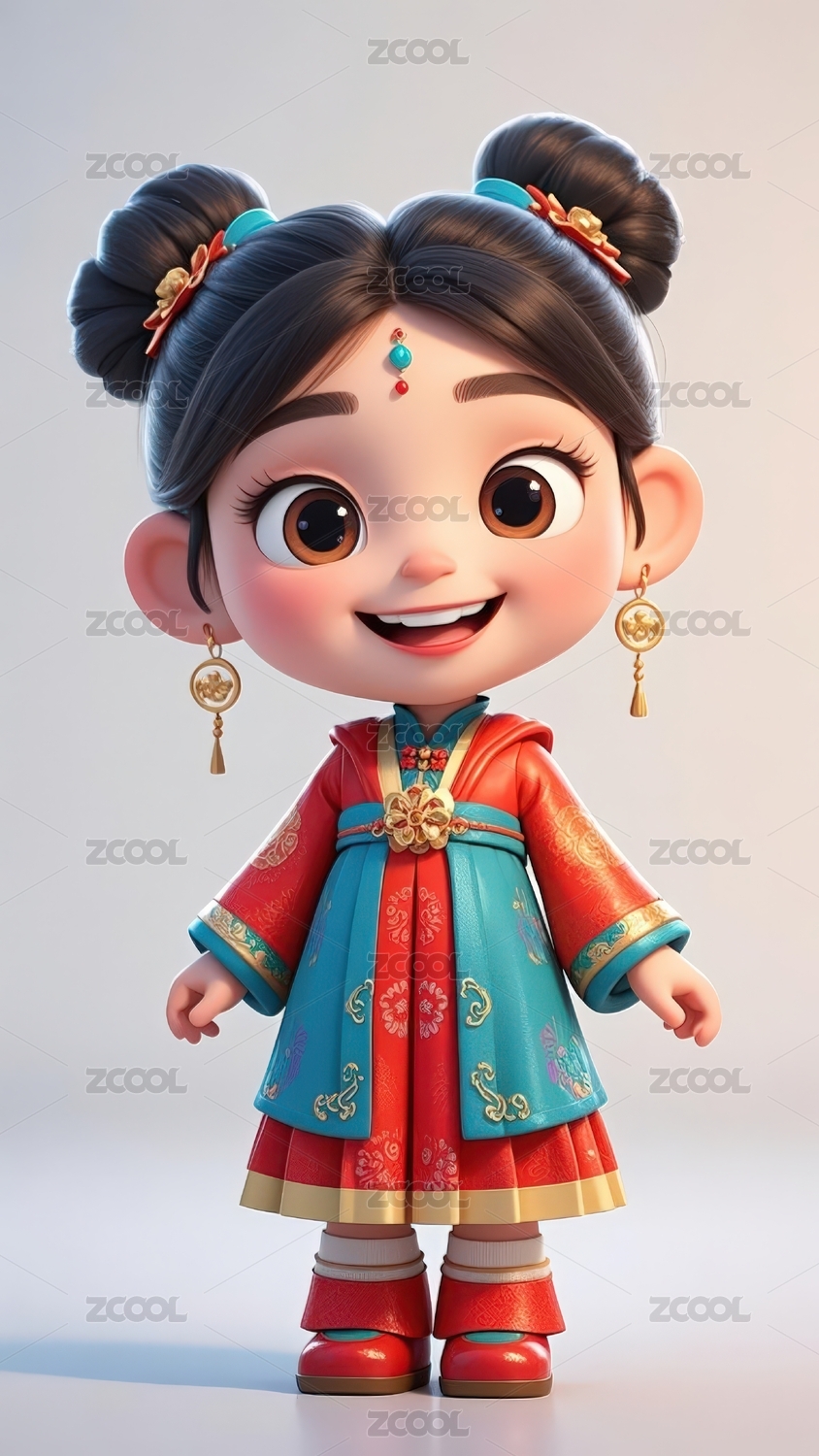 3D,卡通,中国人,女孩,伸手,红色,绿色,鞋子,白色,袜子
