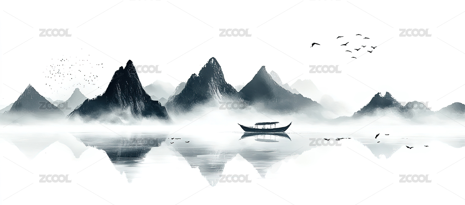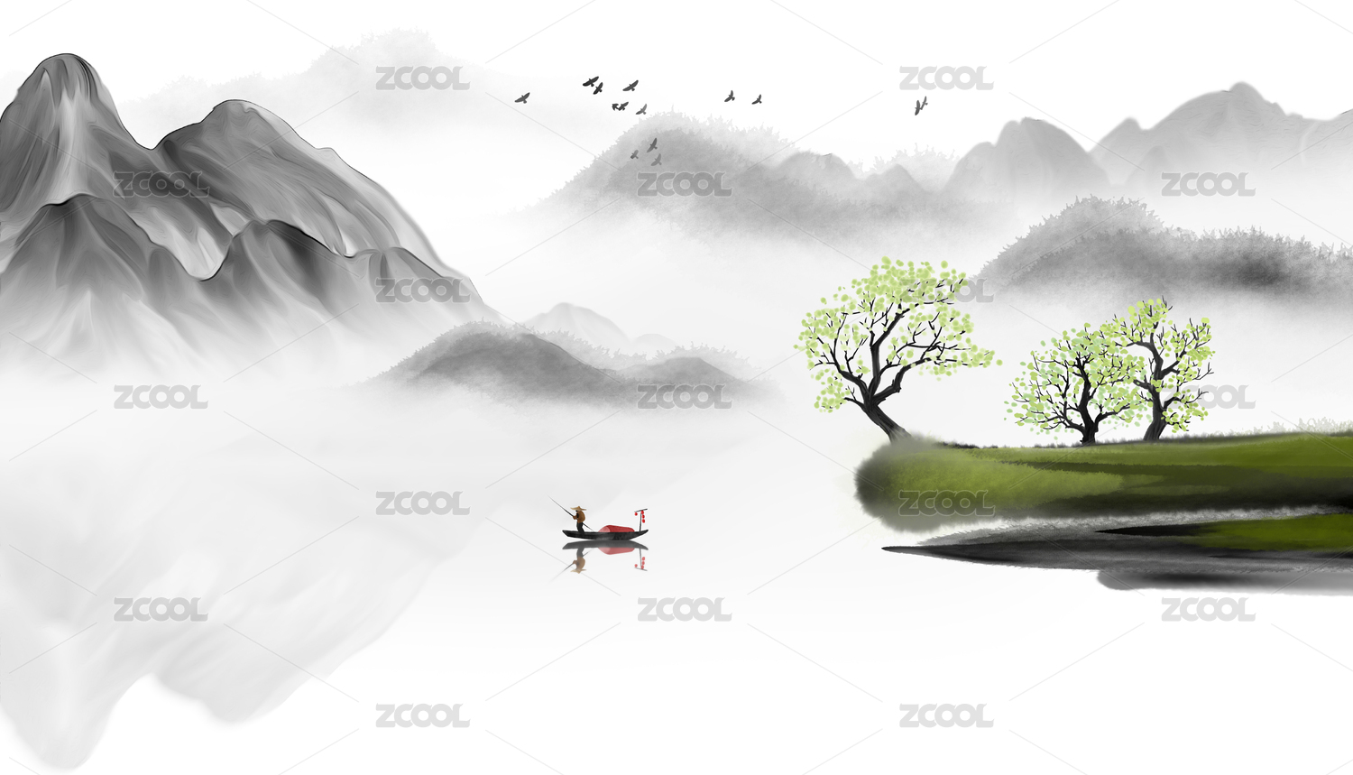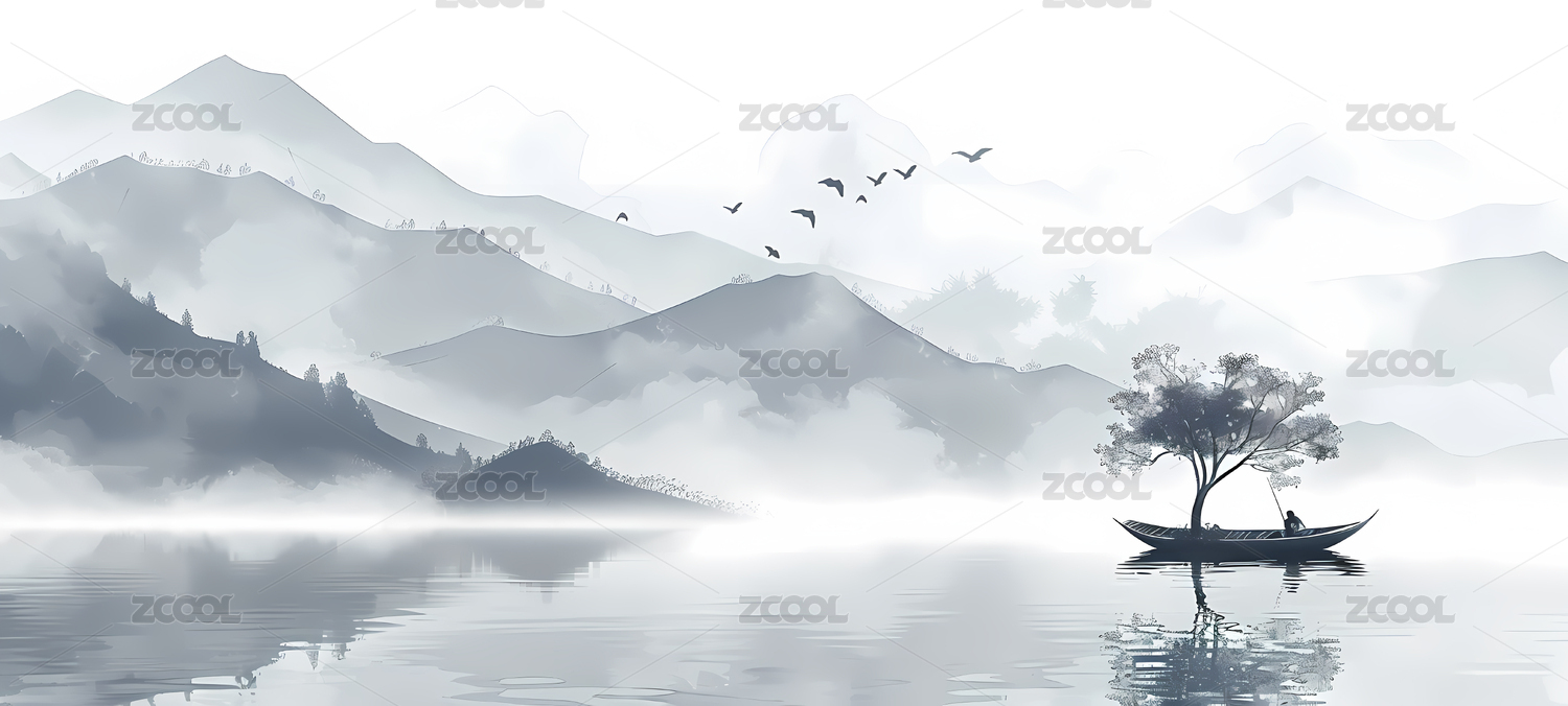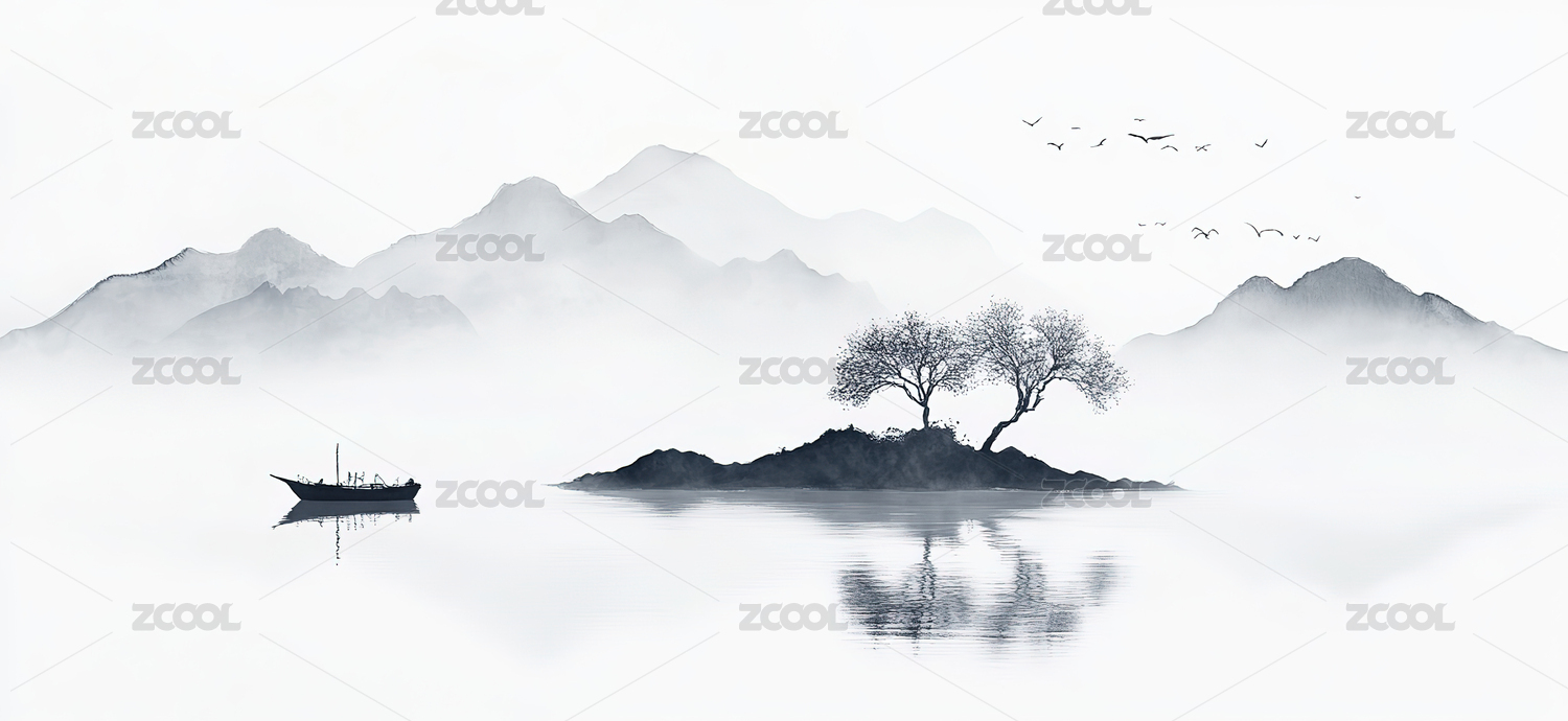 水墨,山水,新中式,装饰画,无框画,远山,意境,墨染,中国风,手绘