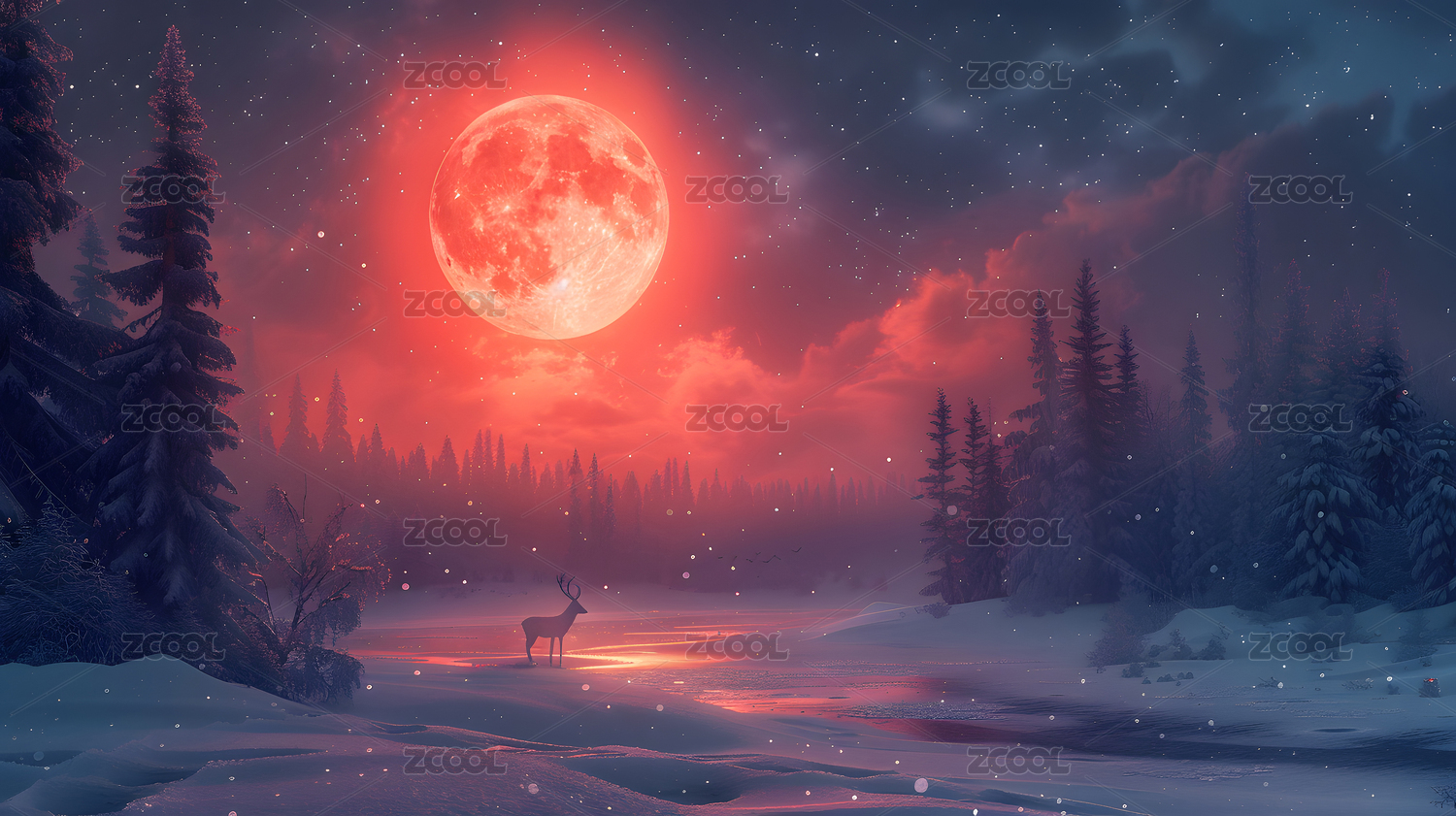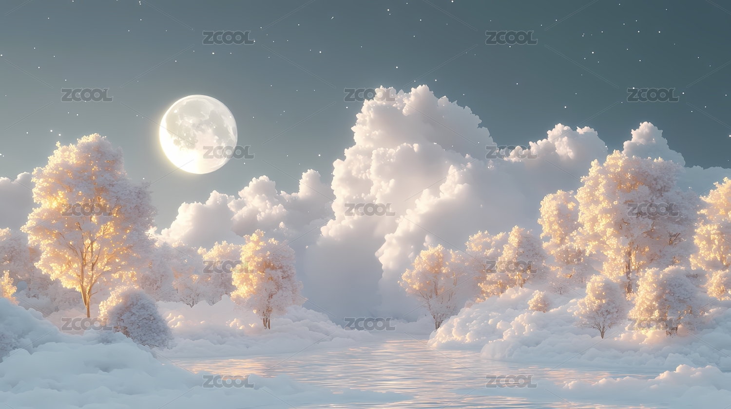 雪夜森林与满月星空