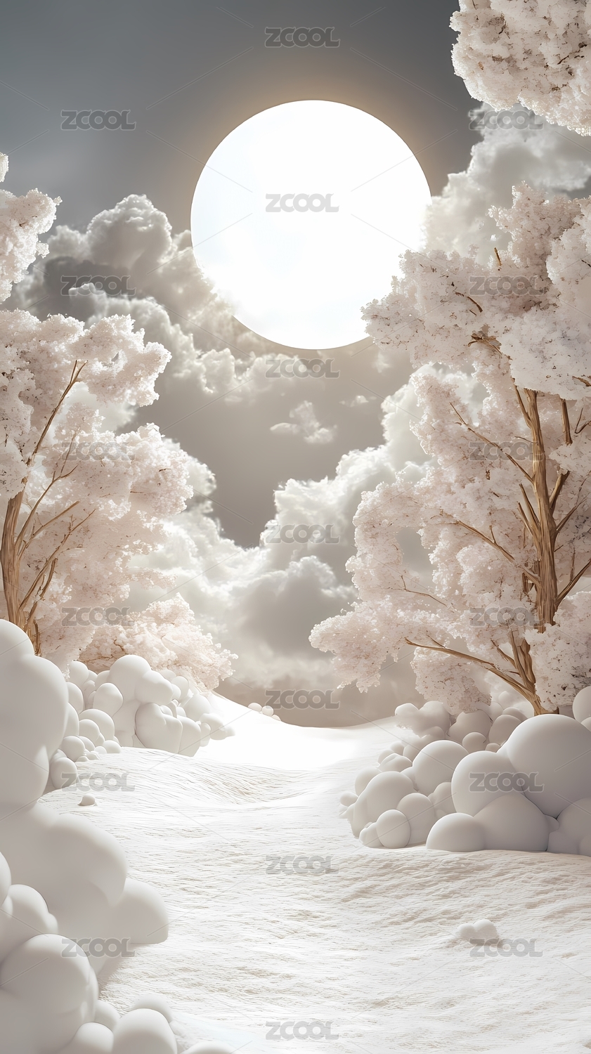 雪地上的树木和月亮