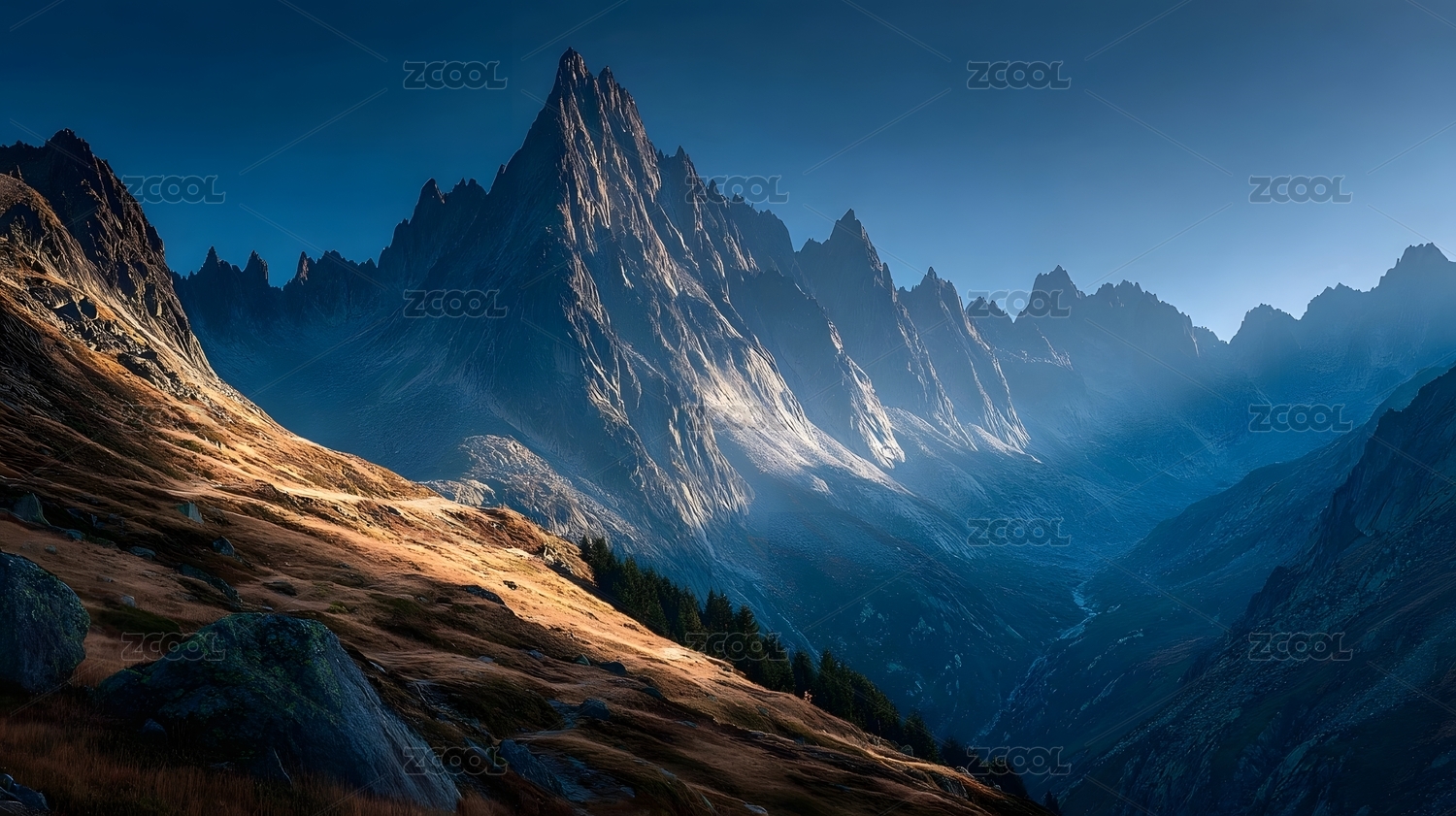山峰晨光