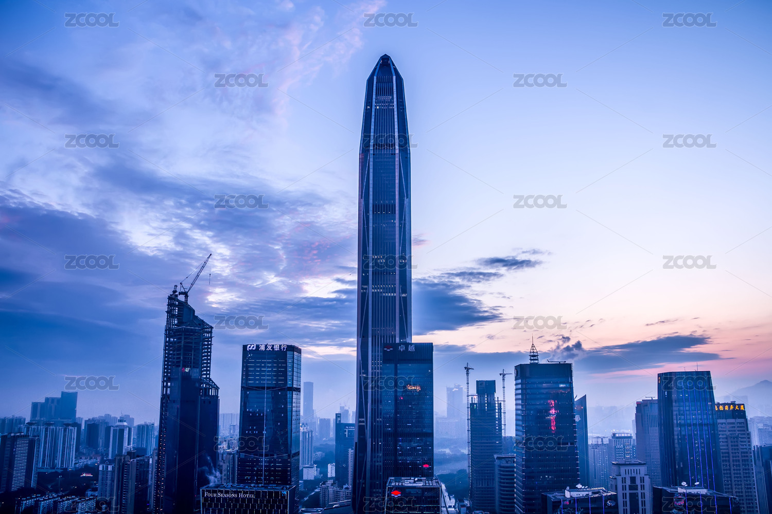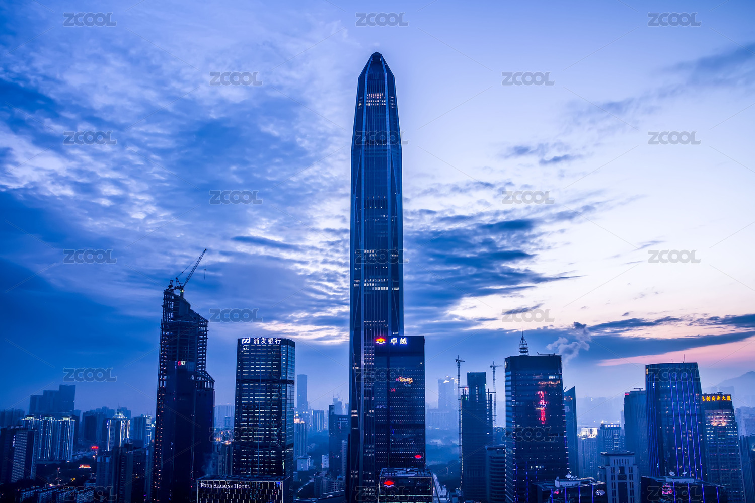 傍晚的中国广东省深圳城市平安大厦天际线建筑群风光