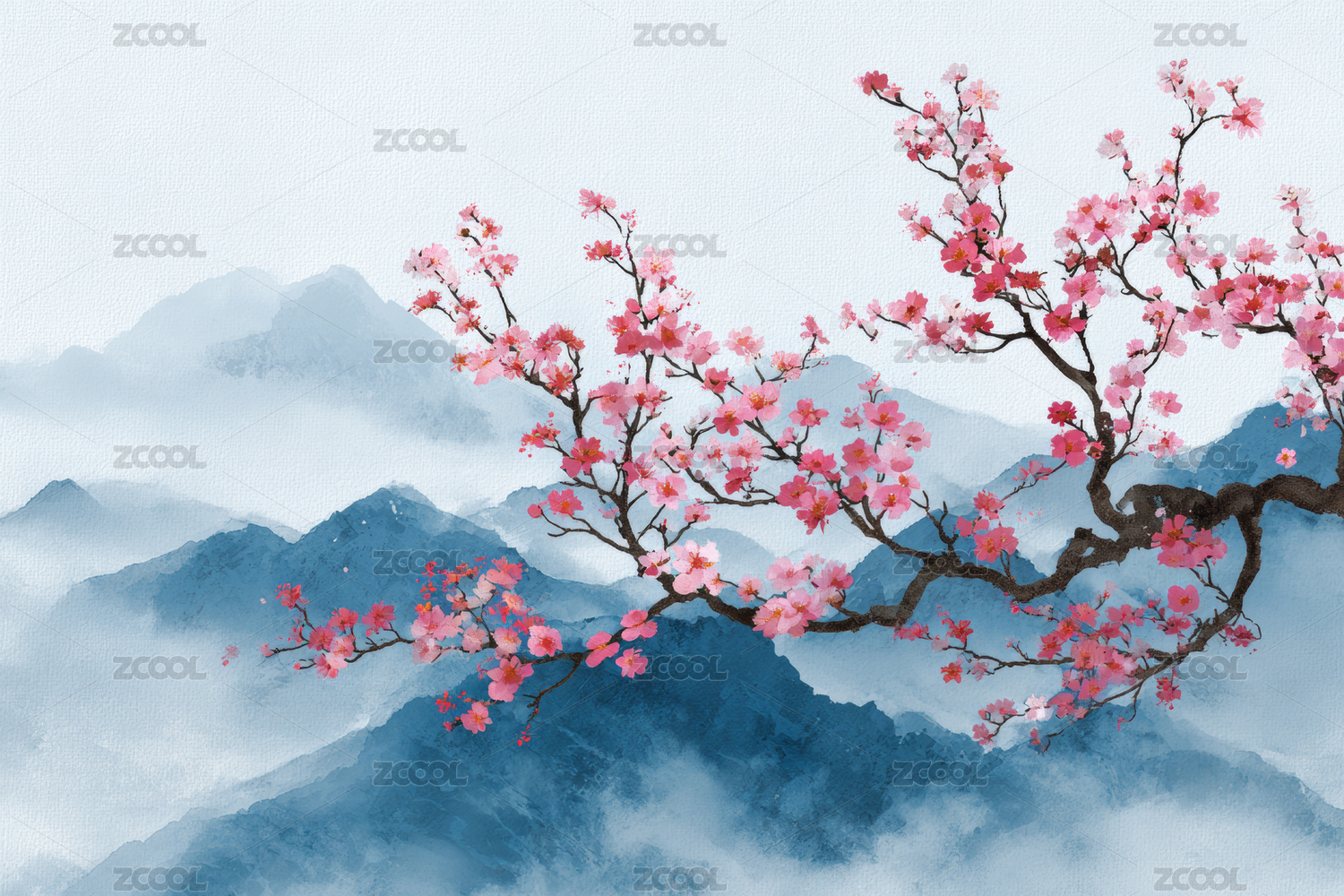 中国风梅花山水意境