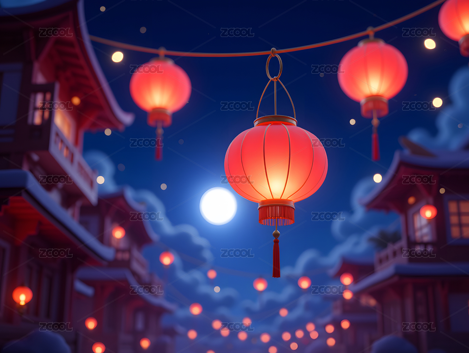 喜庆,新年,建筑,灯笼,插画,古典,明亮,文化,春节