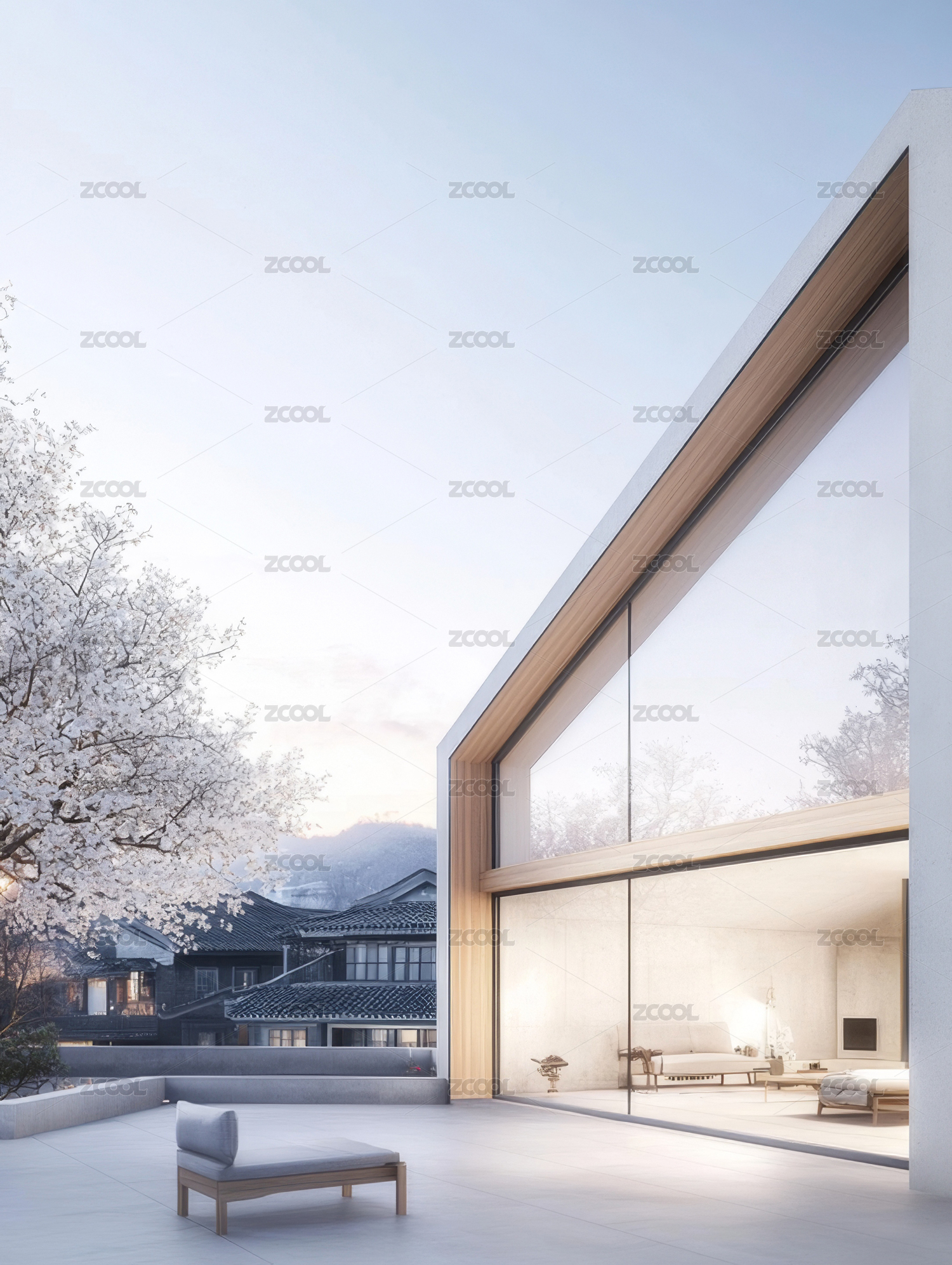 三维,立体,3D,建筑,住宅,设计,现代,简约,极简,玻璃