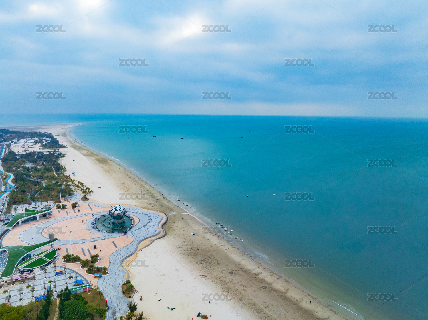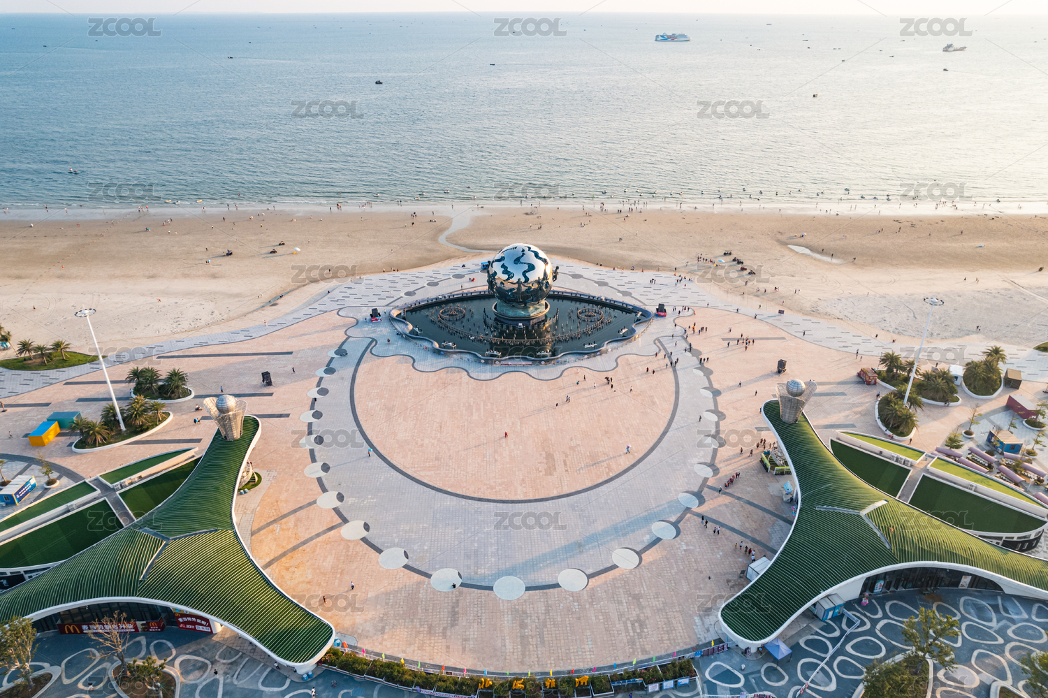 广西北海银滩滨海风光渔港渔船日出朝阳雕塑