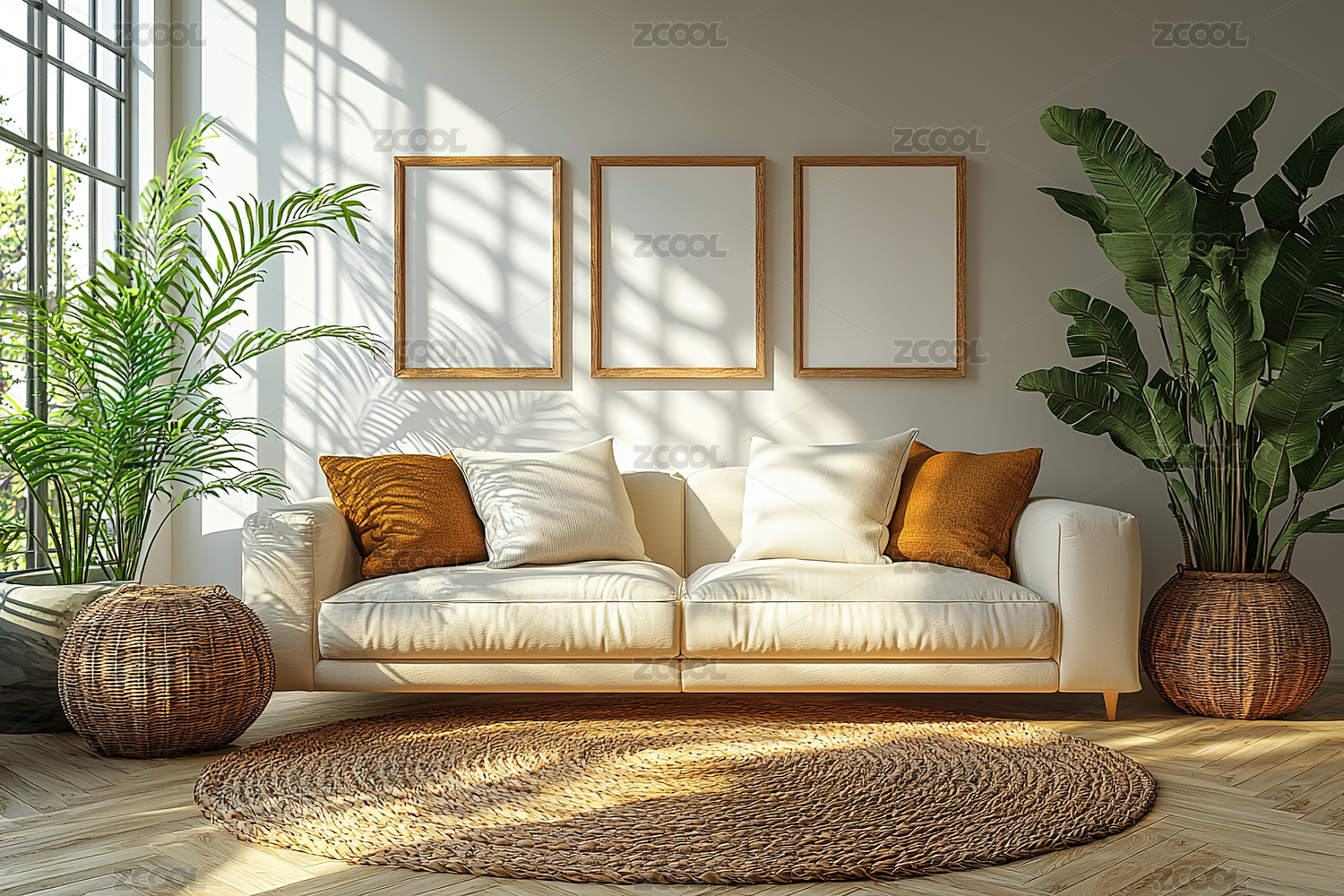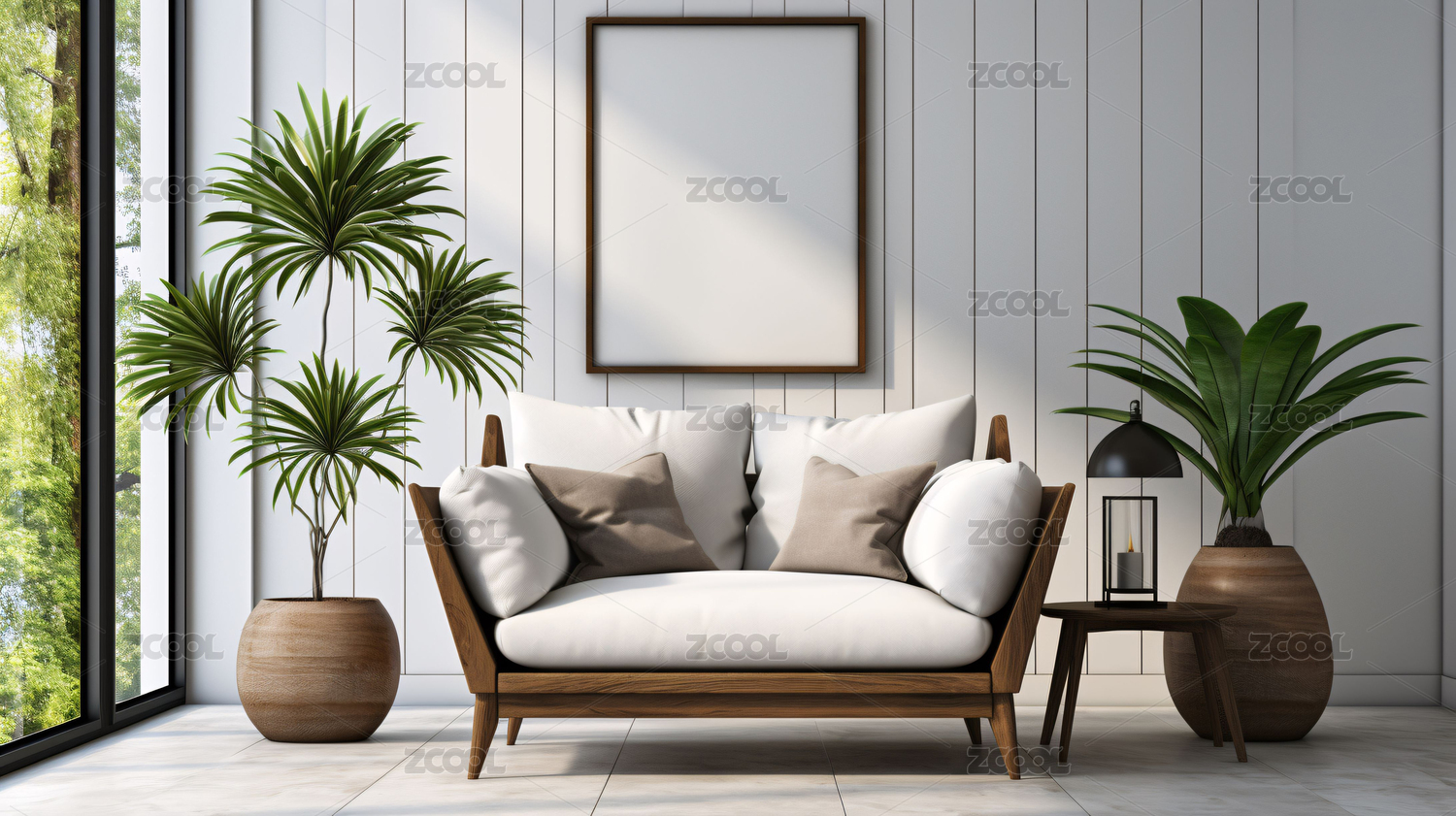 绿植环绕的现代客厅