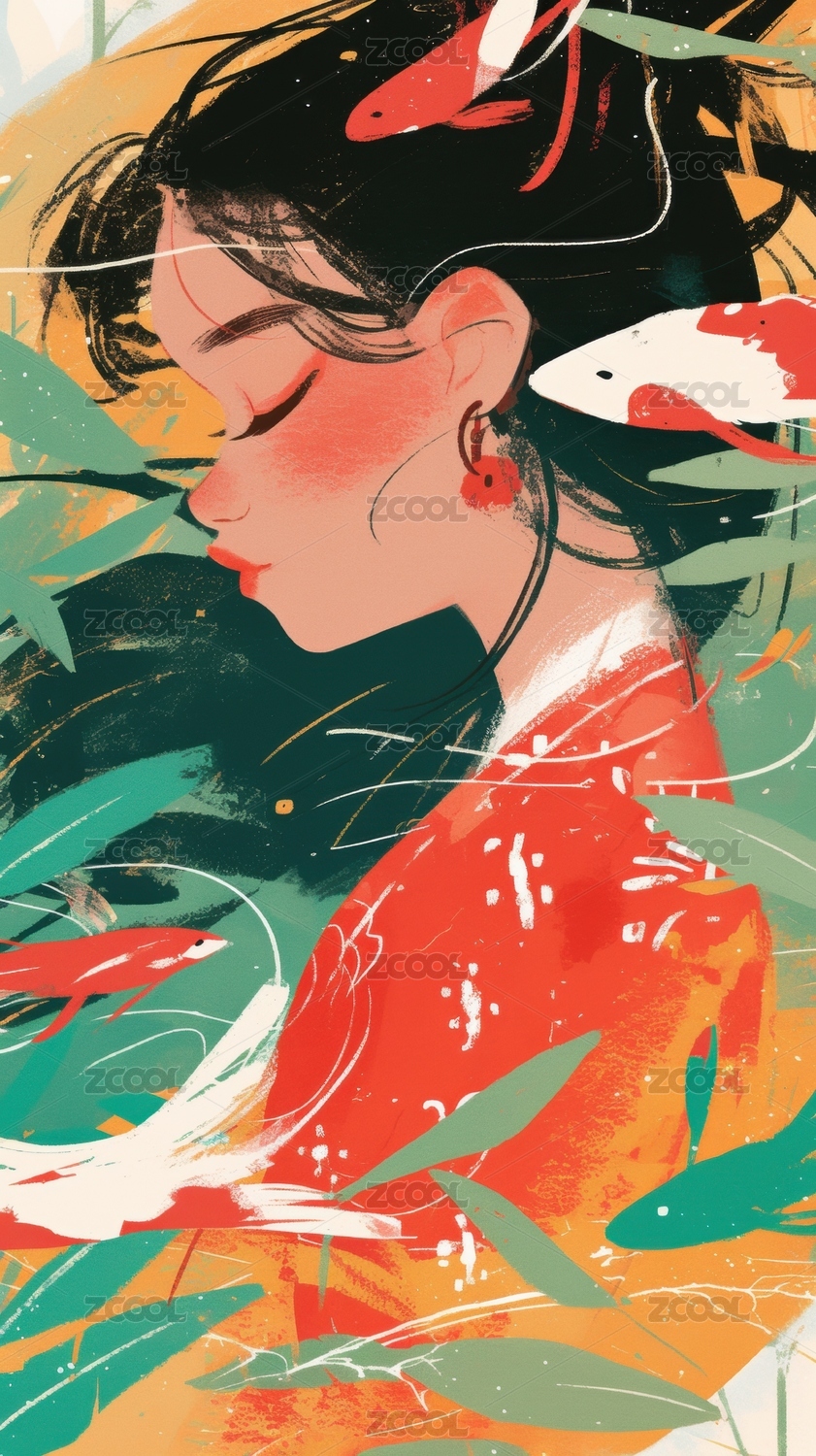 人物,汉服,国潮,古风,女人,美女,数字,插画,影像,绘画