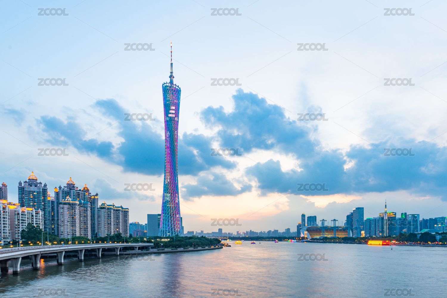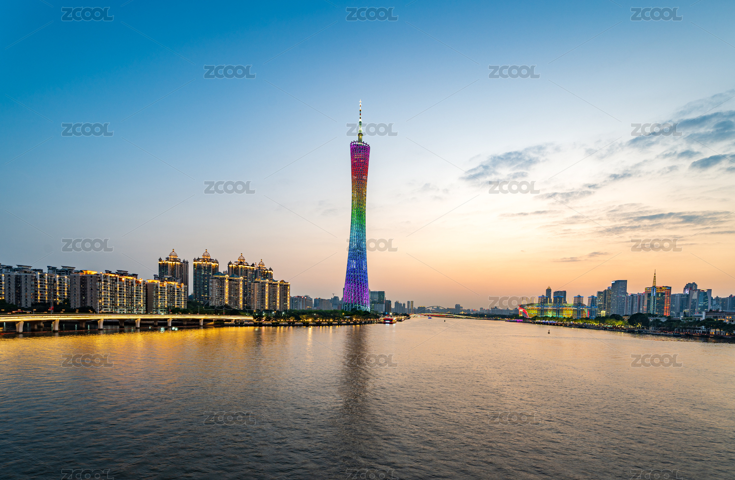 晚霞笼罩下的广州塔与珠江
