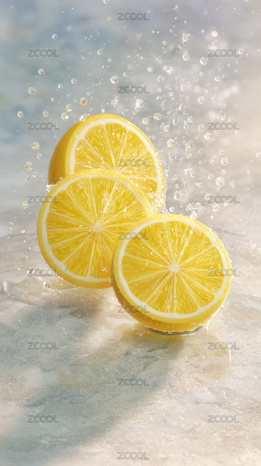 柠檬切片与水滴的清爽瞬间