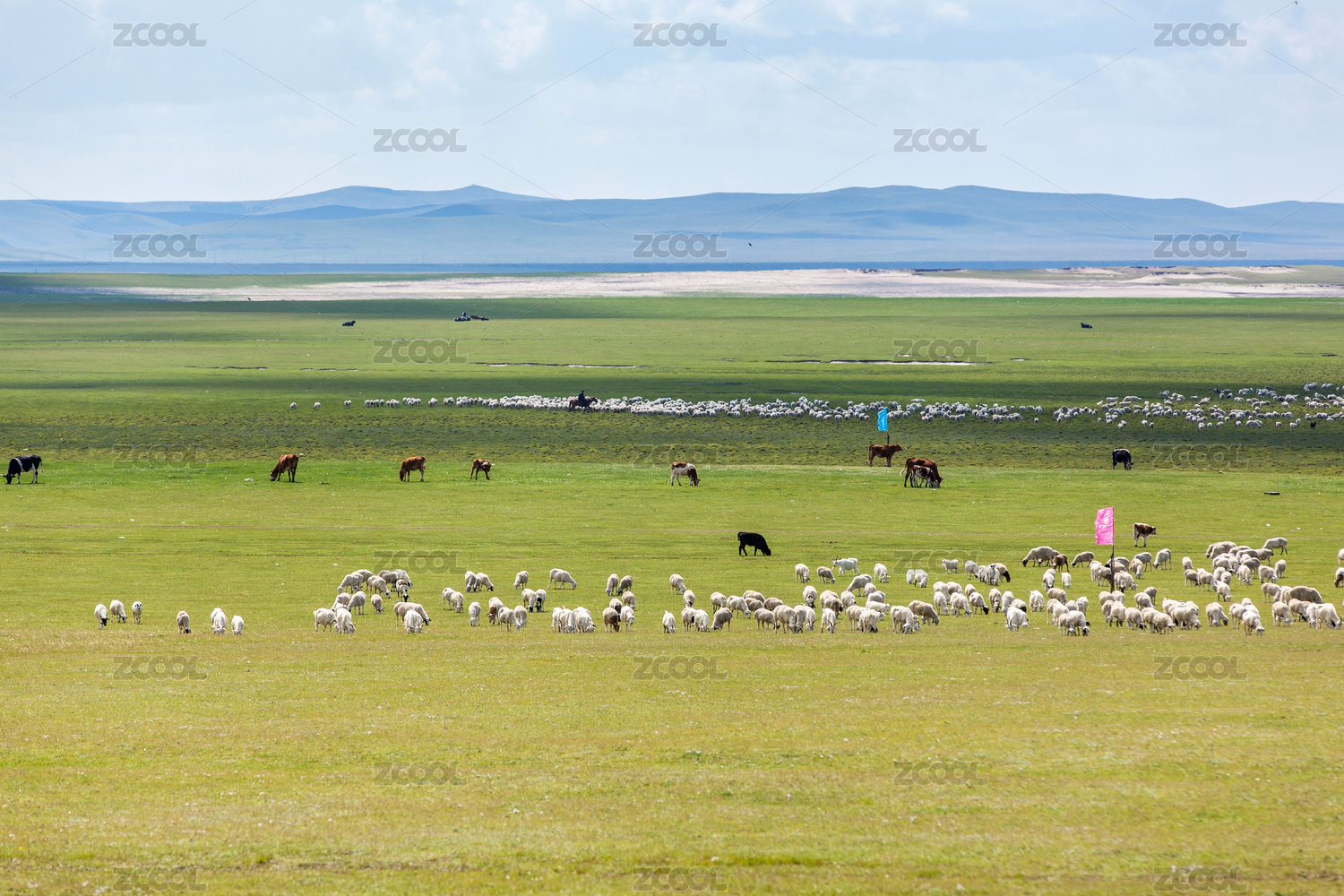 中国内蒙古锡林郭勒大草原放牧的羊群