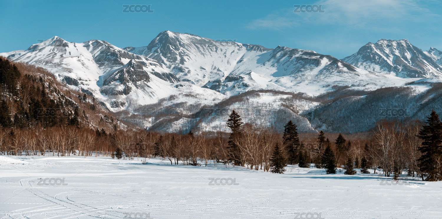 北方的雪山与树林