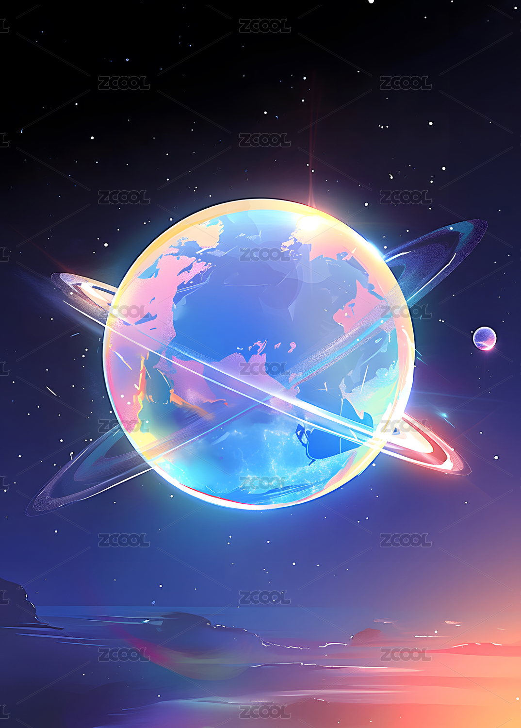 茫茫宇宙中地球迎来了曙光,科技感的插画背景