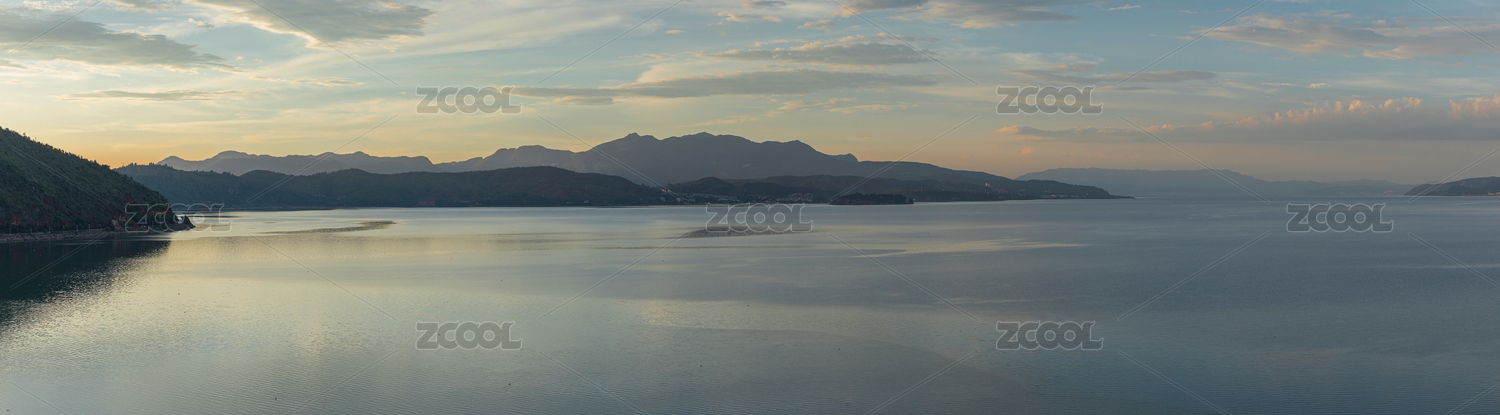 中国云南省丽江市黄昏晚霞泸沽湖自然景观
