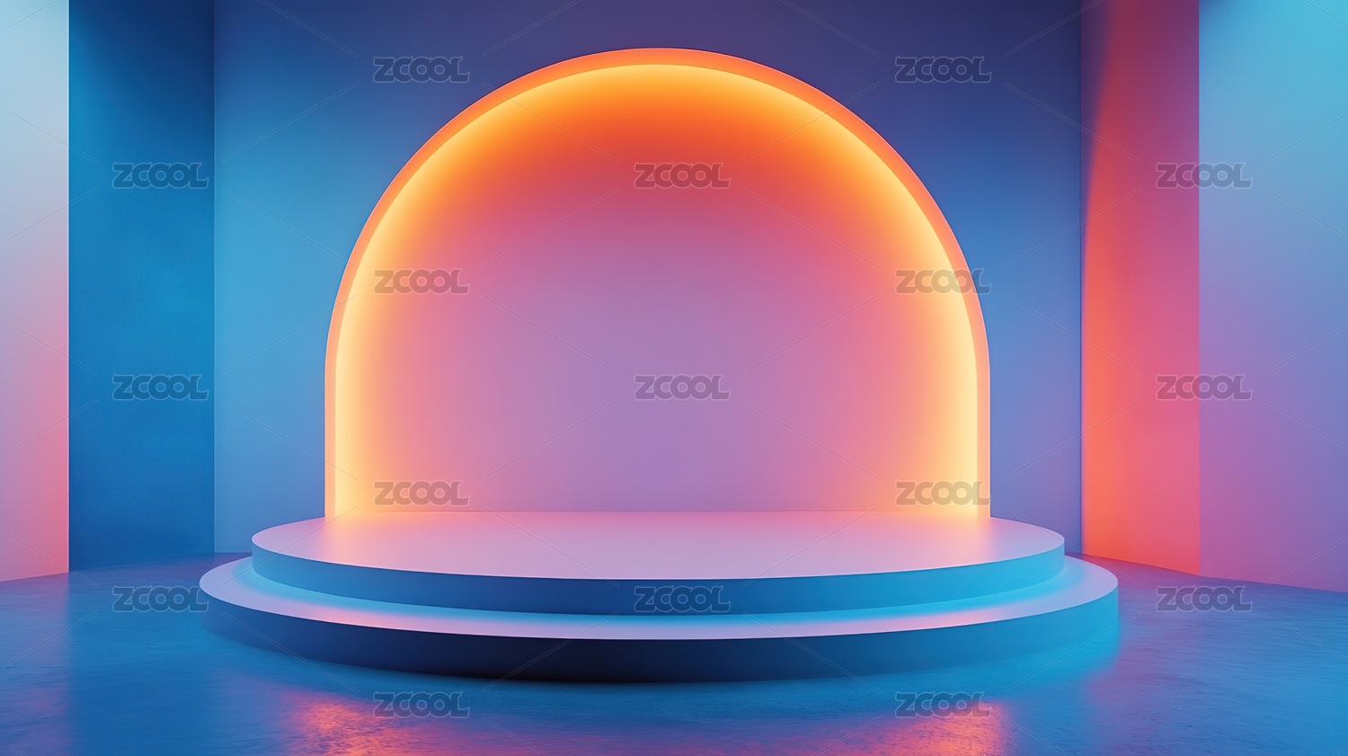 简约粉紫色拱门前的圆形3D展台