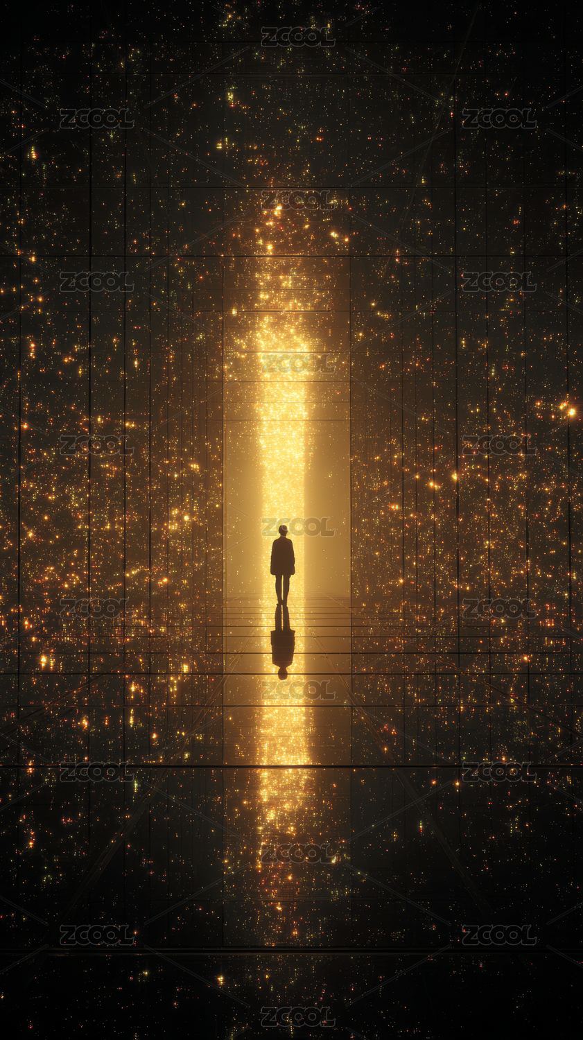 神秘光芒中的孤独身影