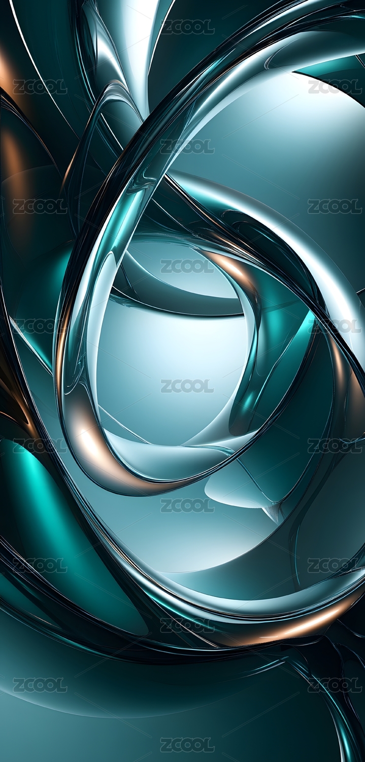 数码科技蓝绿色波浪曲线抽象海报网页背景