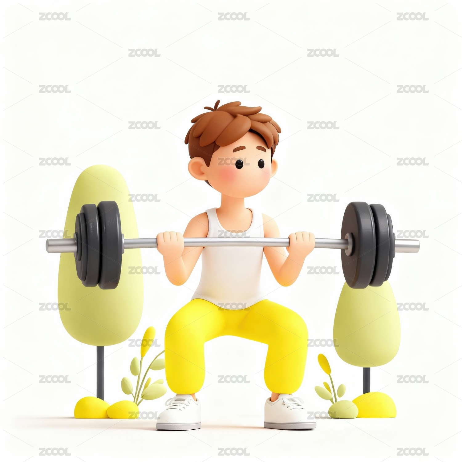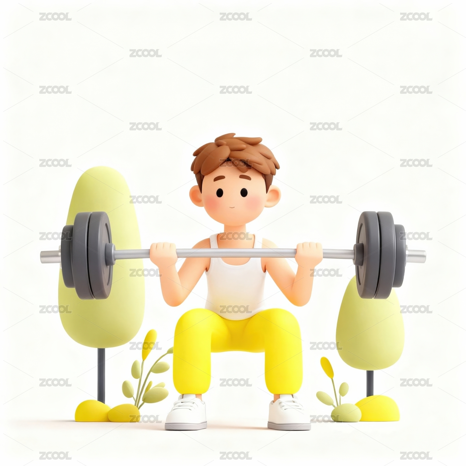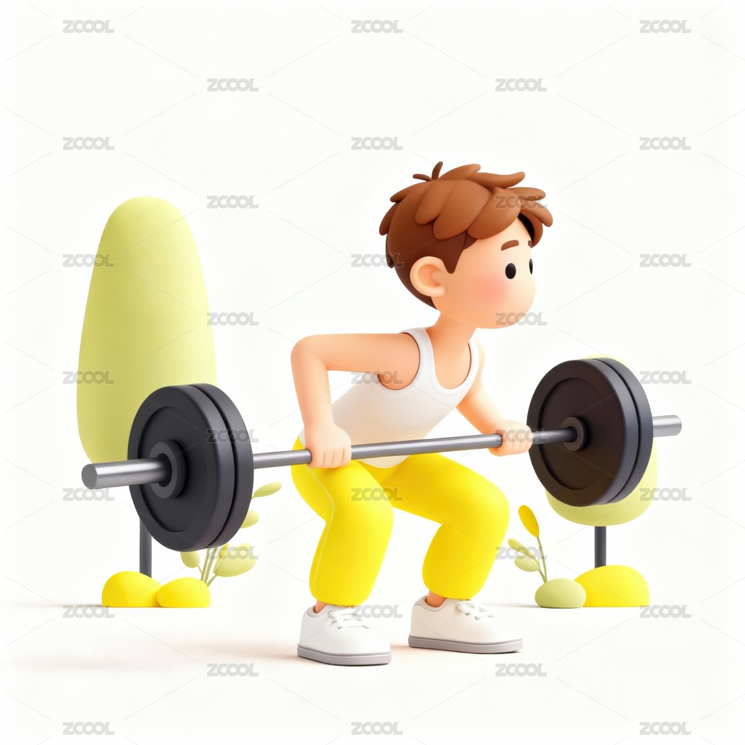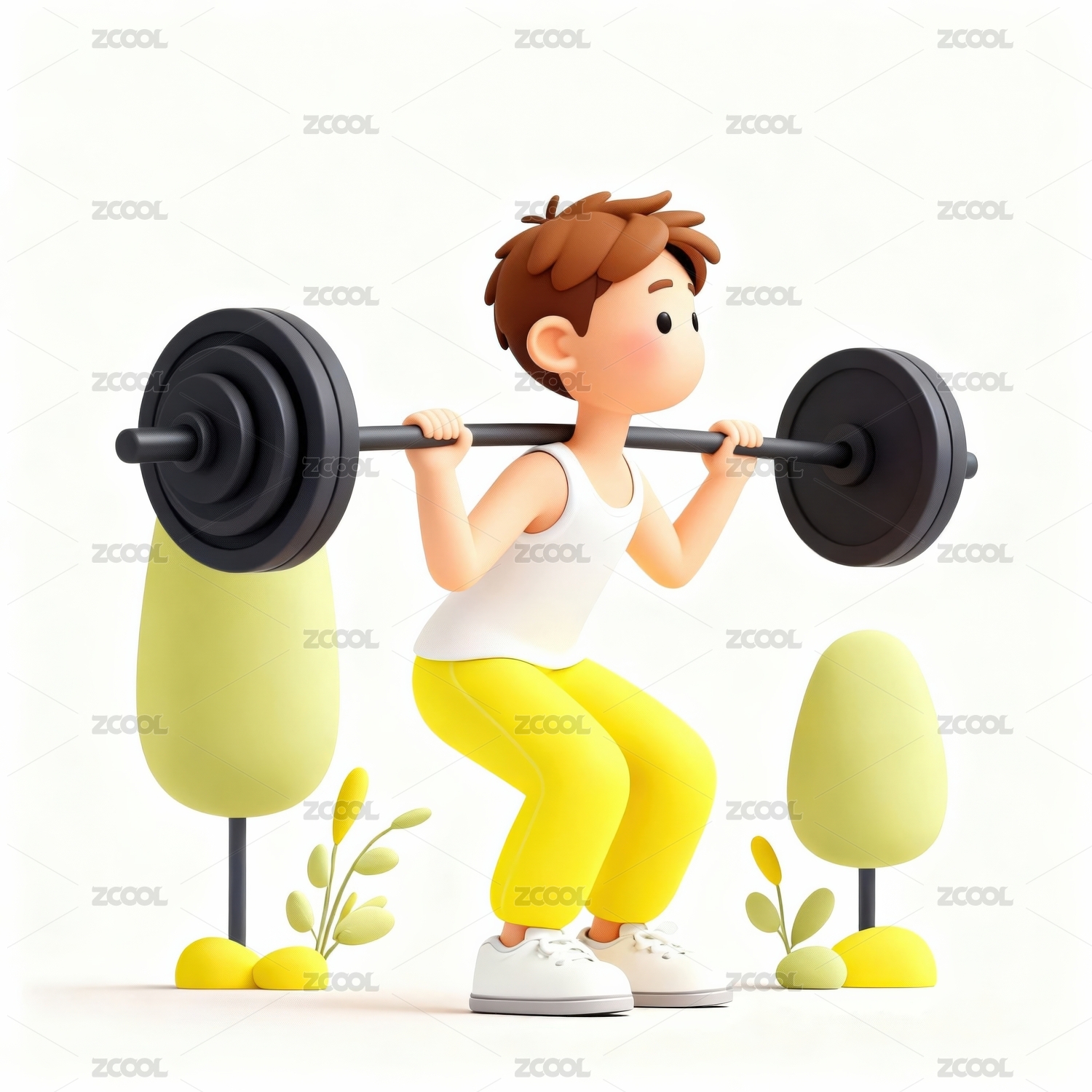 卡通男孩举重展现力量