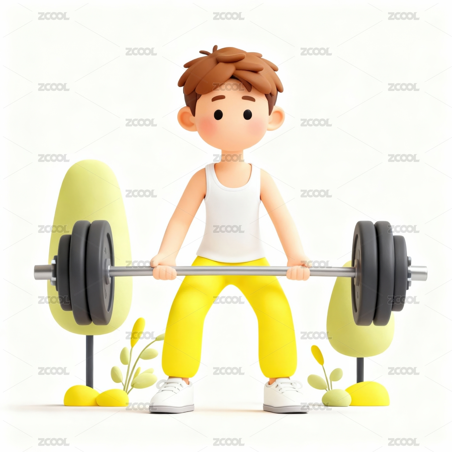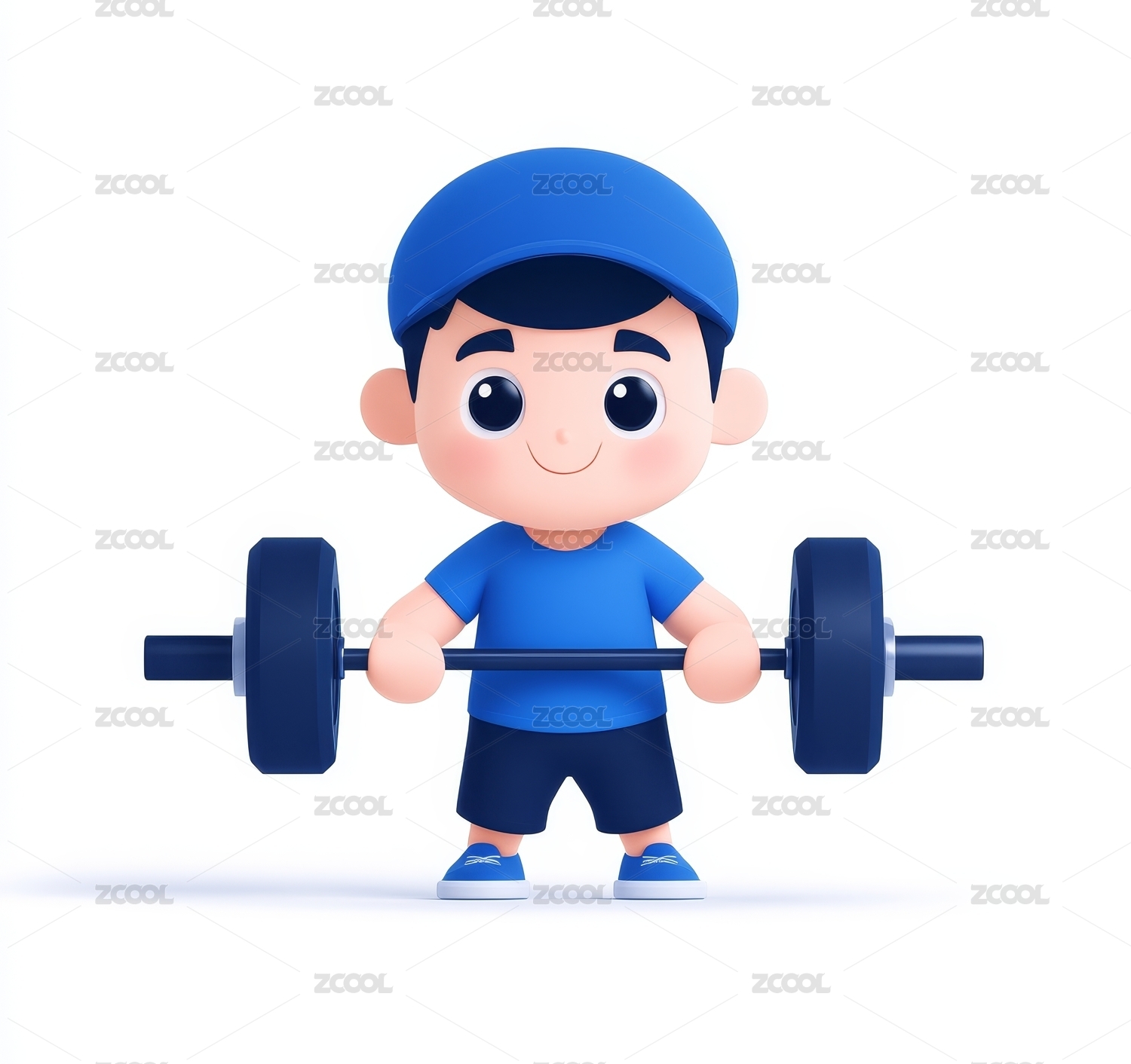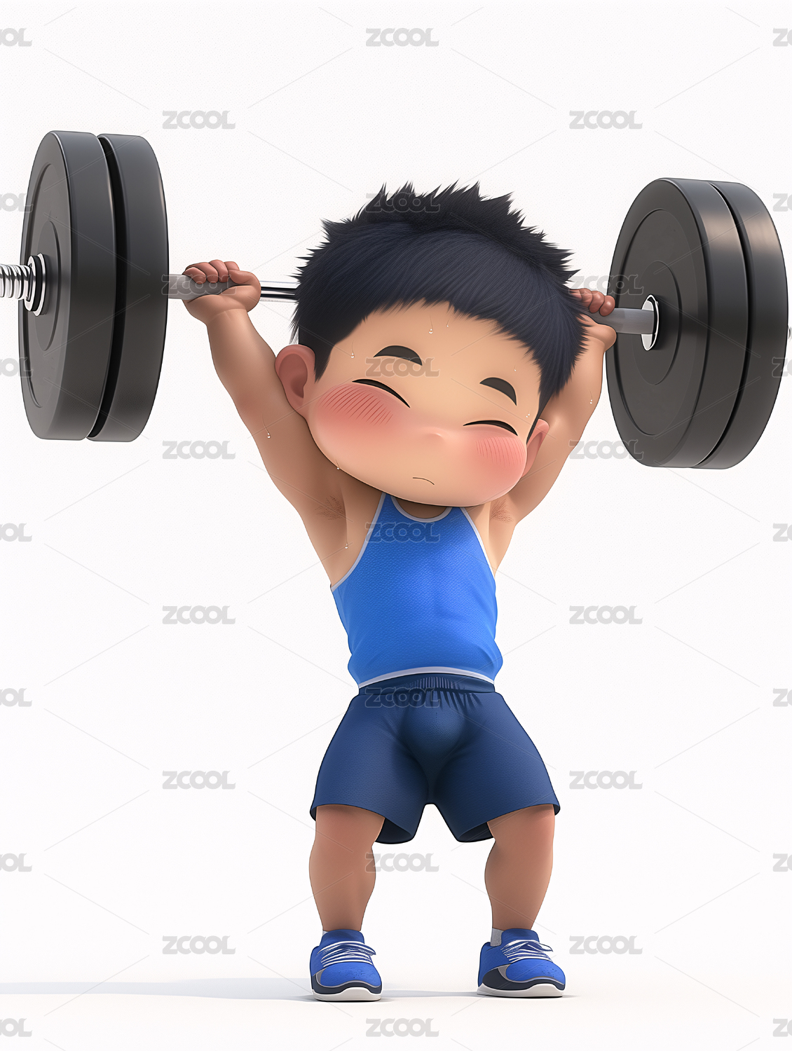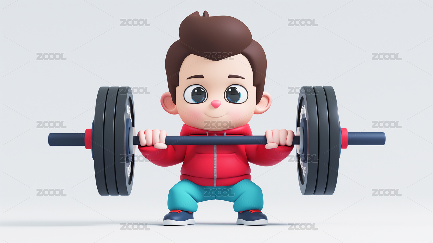 夸张举重双手举杠铃的男孩3D卡通插画绘画