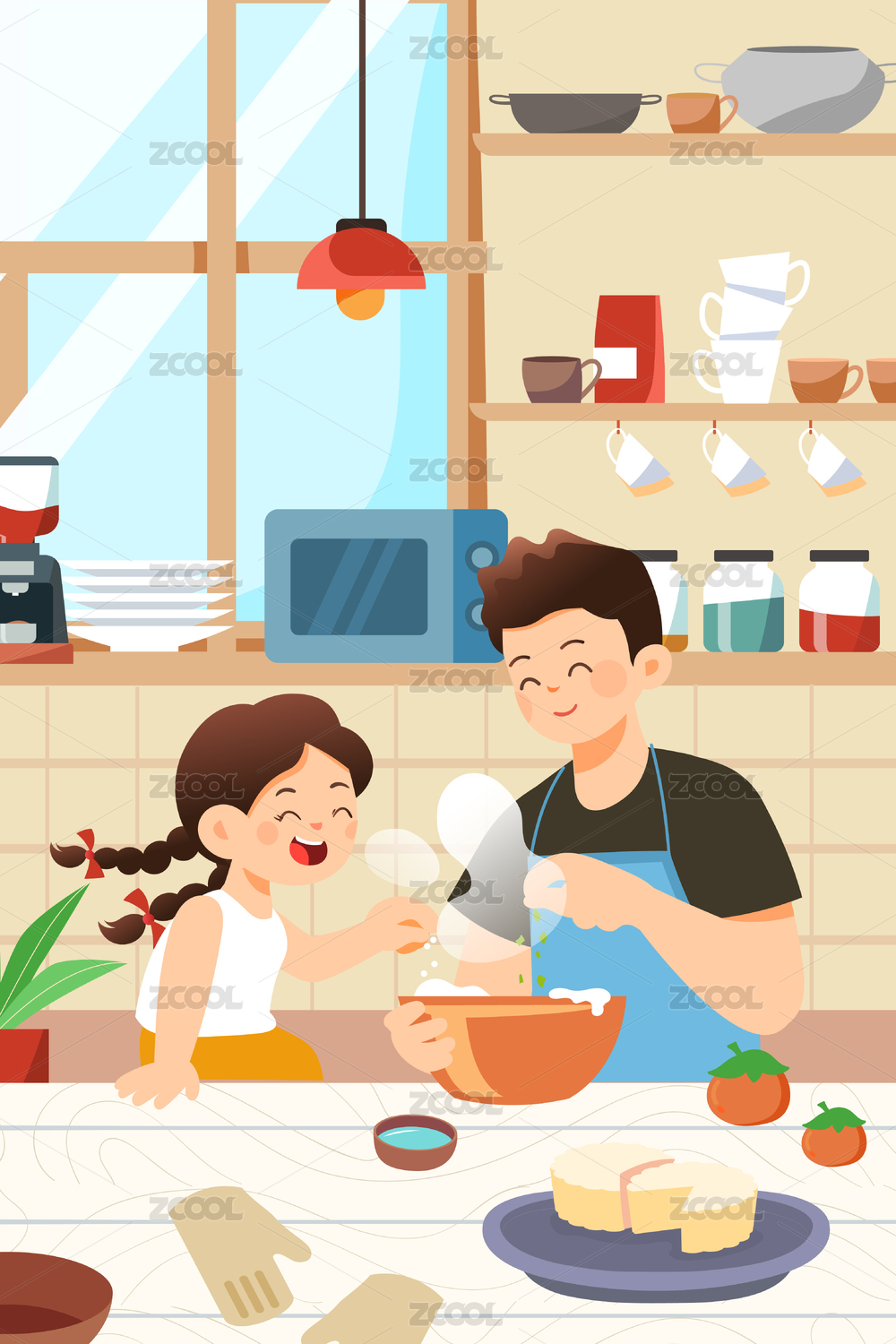 父亲节端午节包粽子父子厨房矢量竖版无字