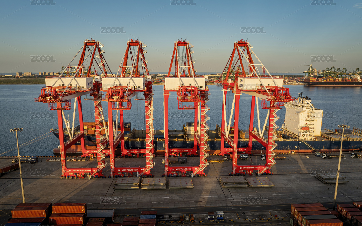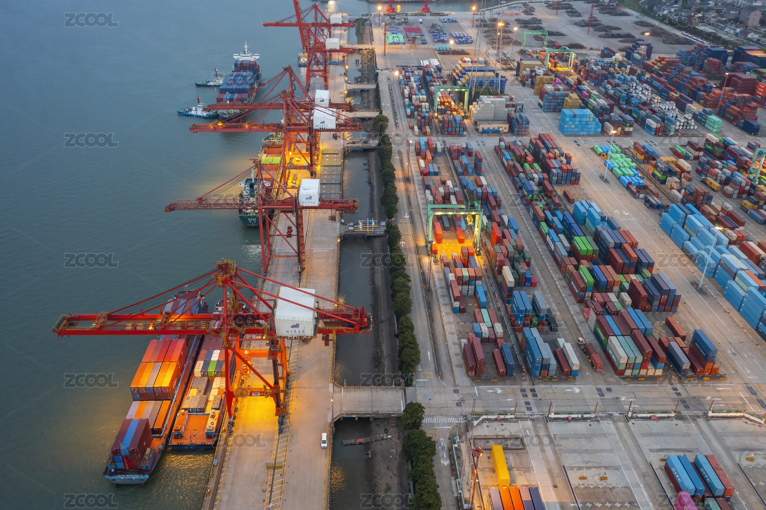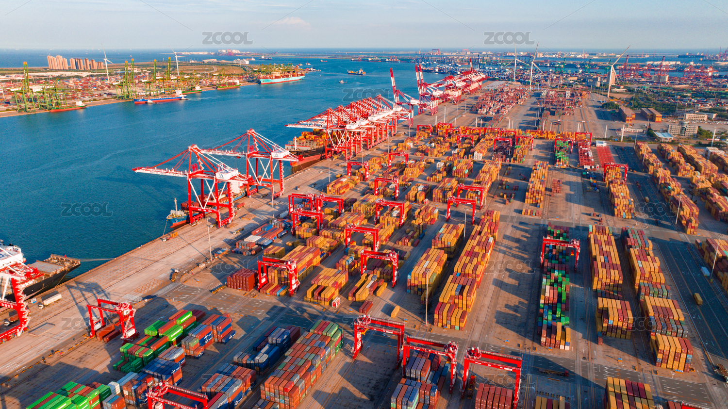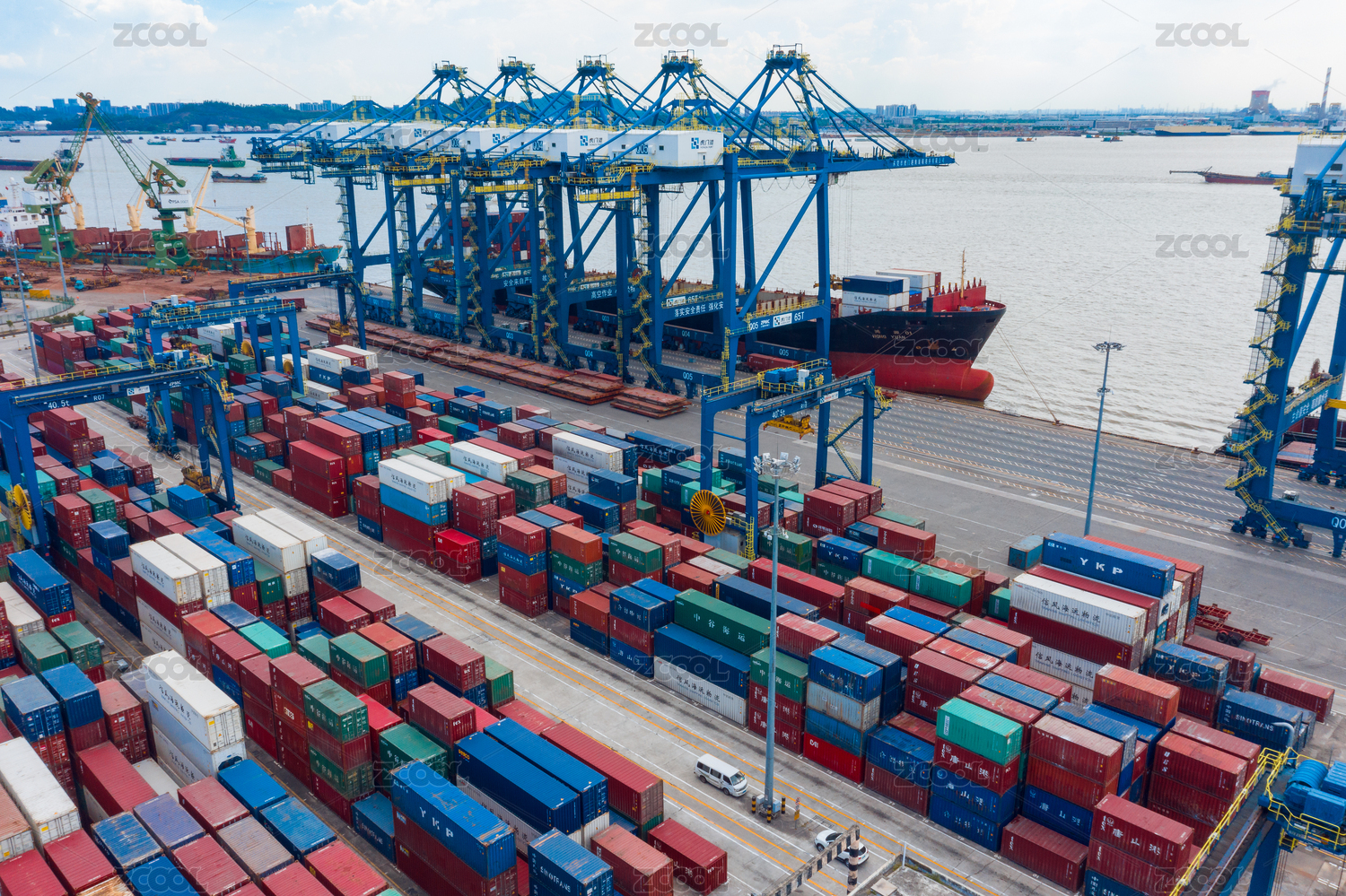 港口集装箱货轮码头的高空俯瞰全景航拍