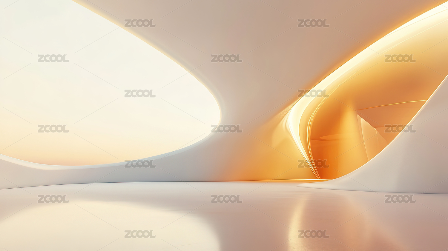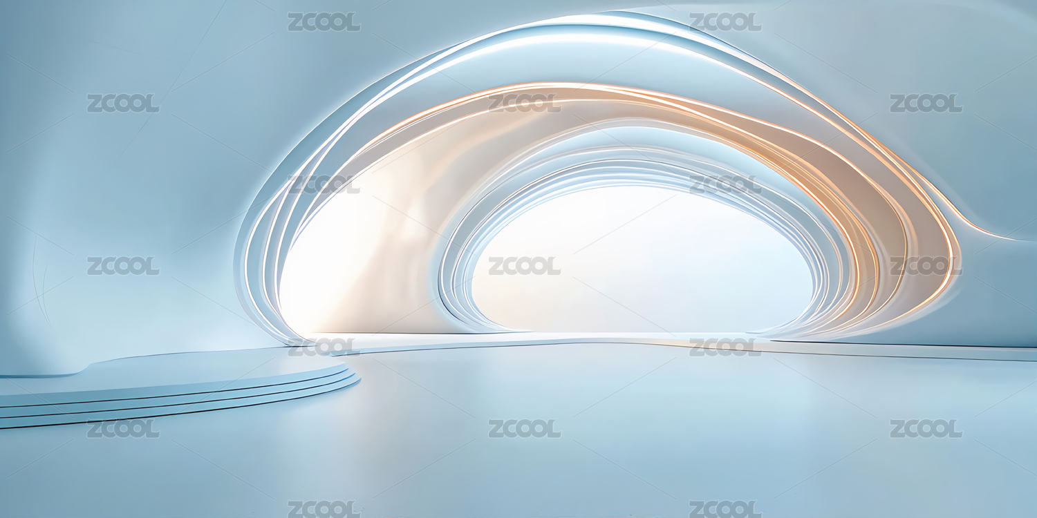 抽象的室内设计呈现柔和的曲线和光影