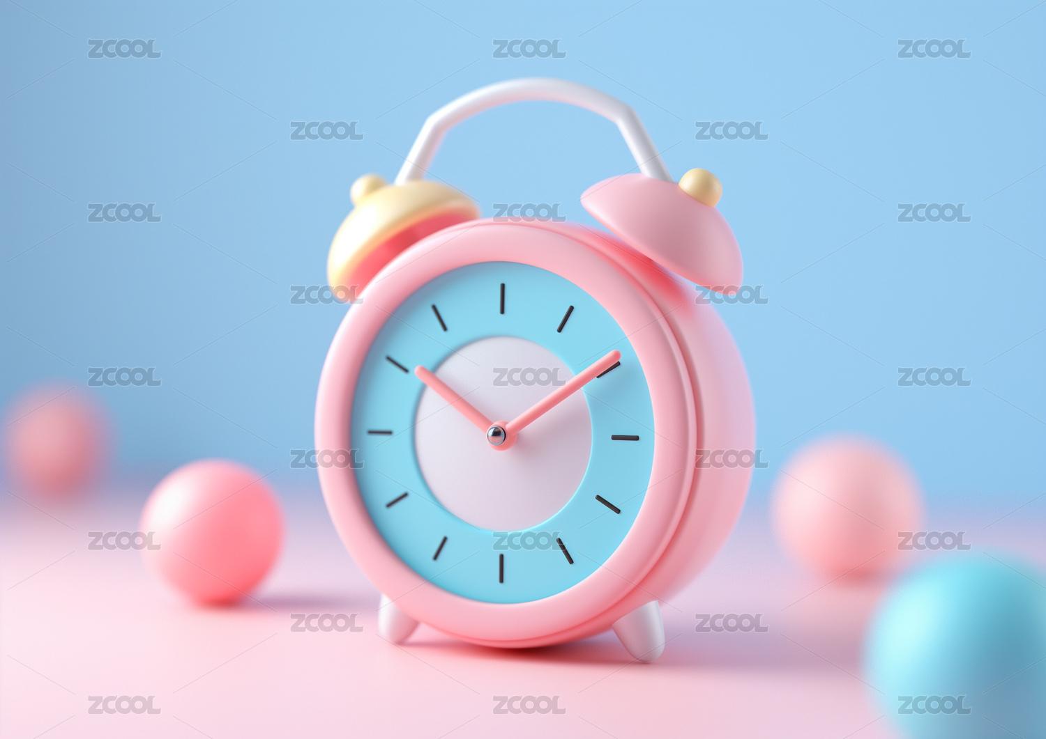 经典闹钟与蓝粉双色背景 3D渲染