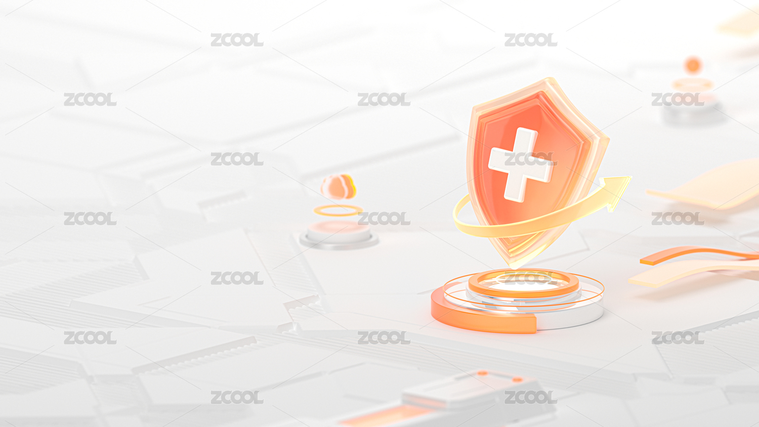 橙色科技盾牌保护B端智能场景背景3D渲染