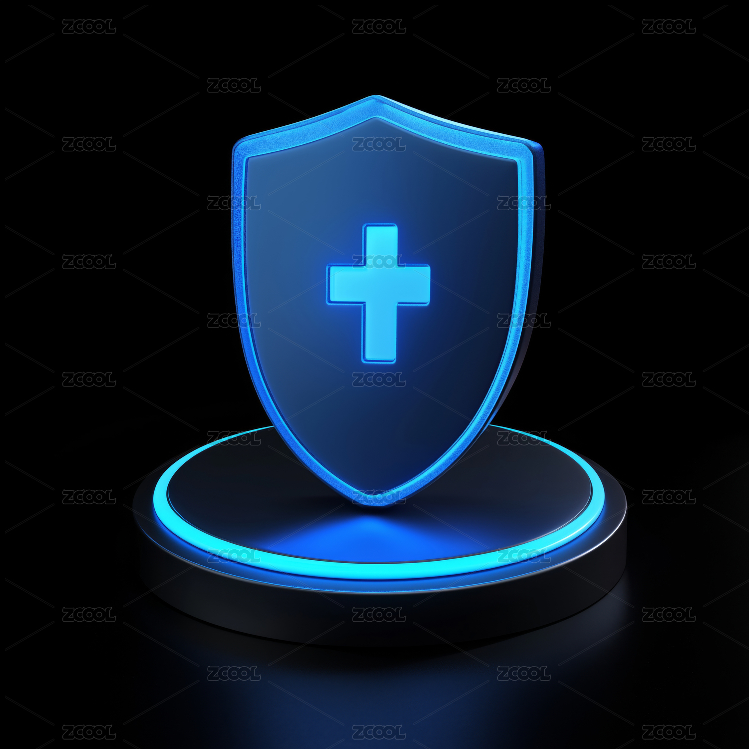 蓝色商务科技3D渲染盾牌图标主视觉背景