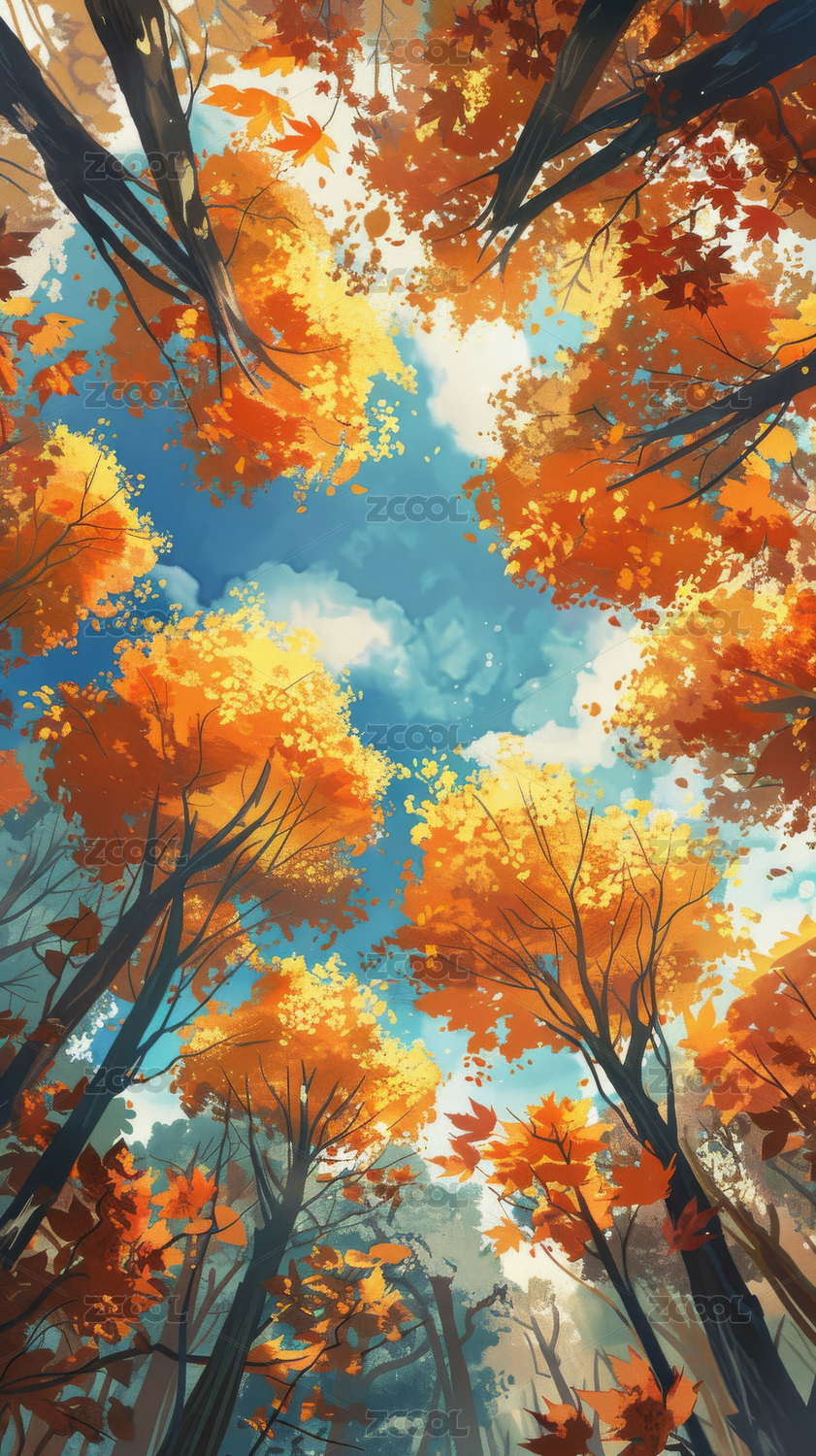 秋天,秋季,风景,插画,场景,背景,秋,金秋,插图,秋日