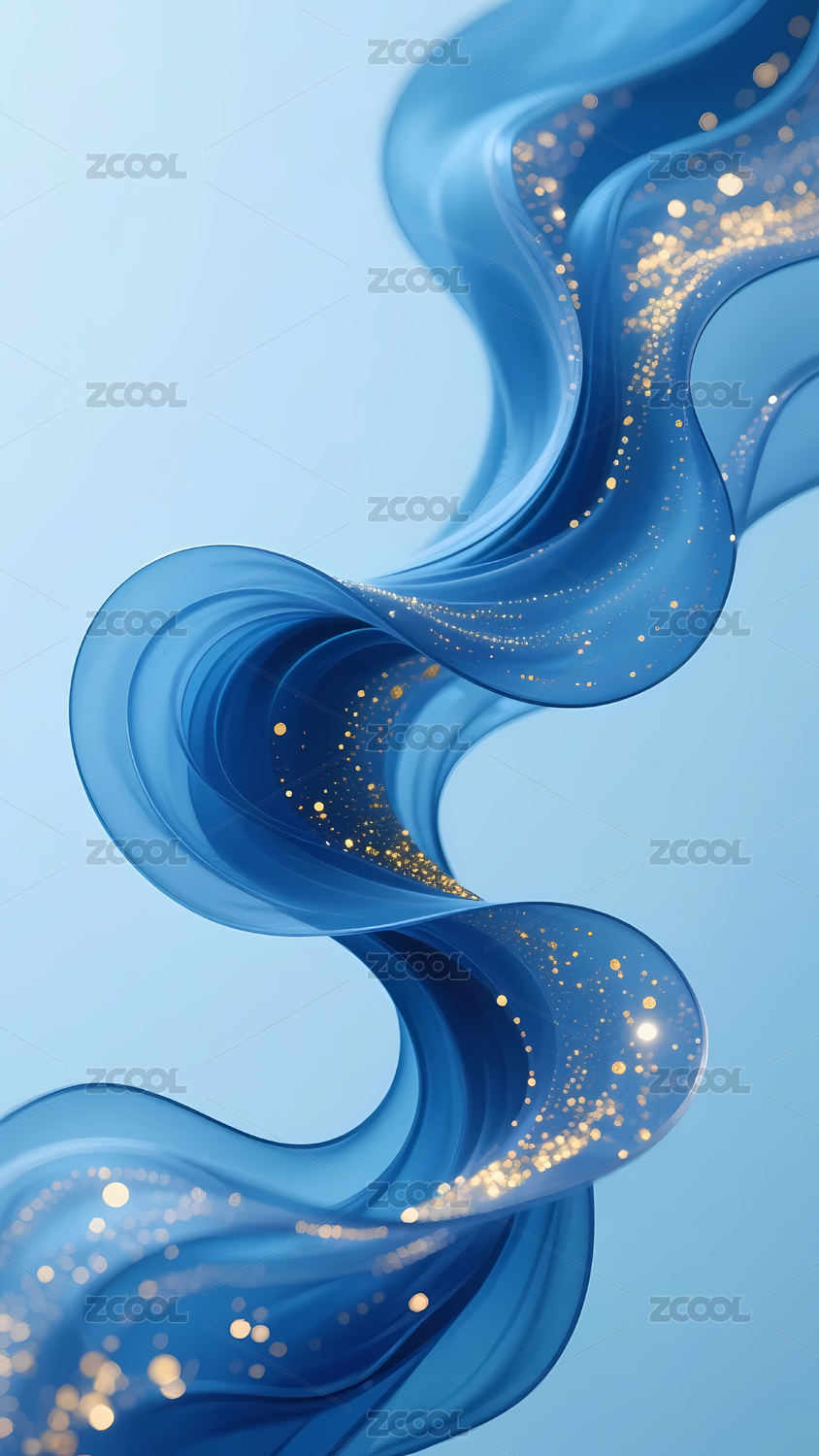 蓝色金色梦幻飘逸抽象艺术