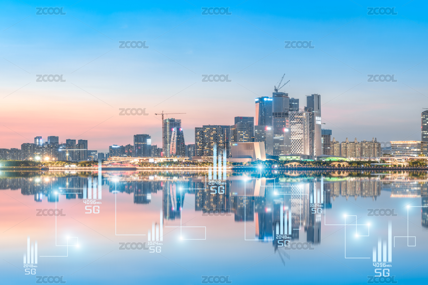 5G,科技,城市,深圳,前海,夜晚,灯光,建筑,地标,摩天大楼