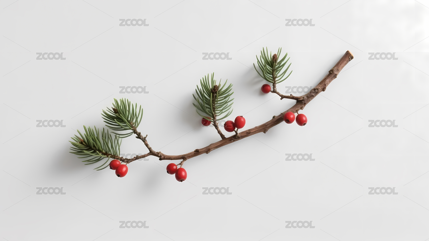 树枝针叶红色浆果灰色背景