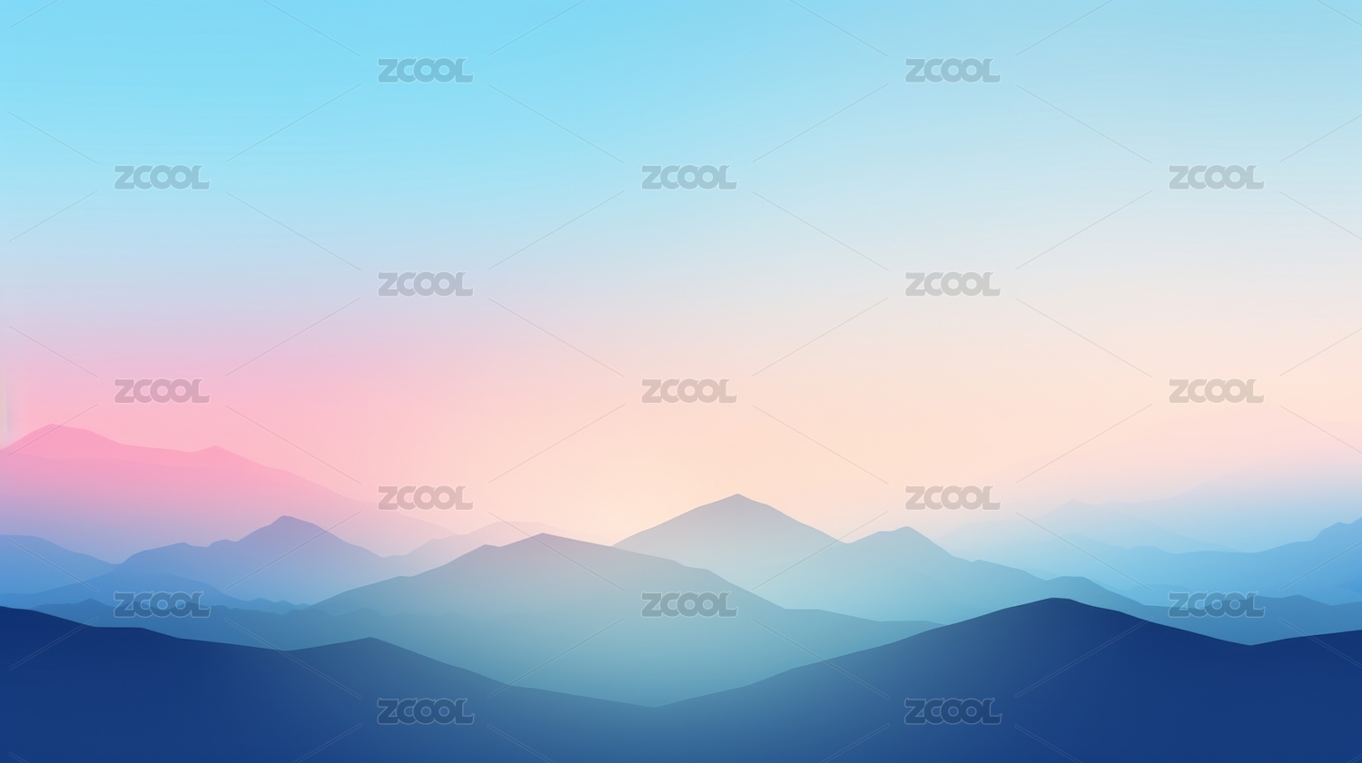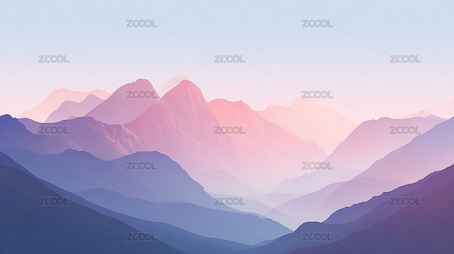 粉蓝渐变山峦呈现梦幻艺术的装饰视觉