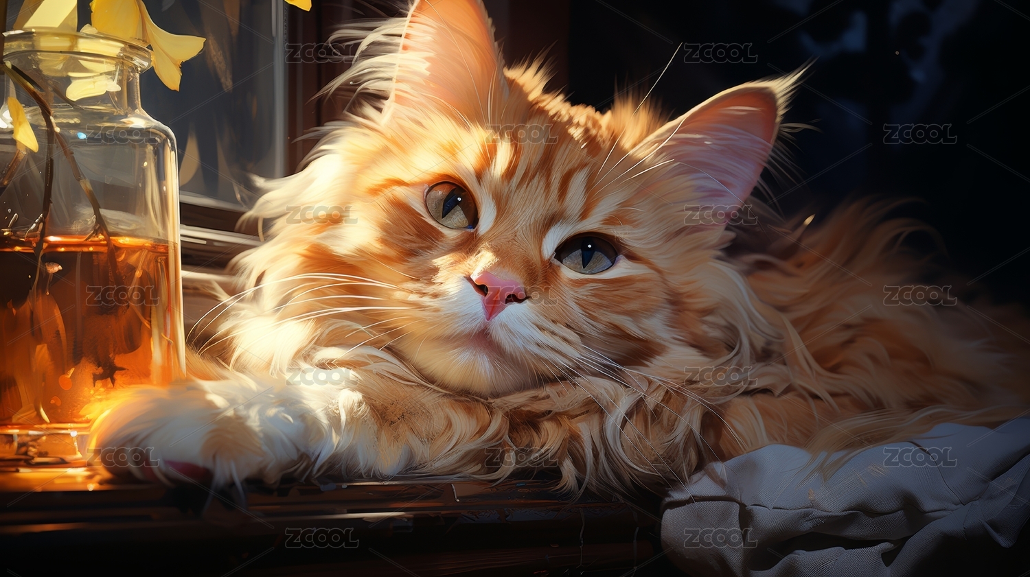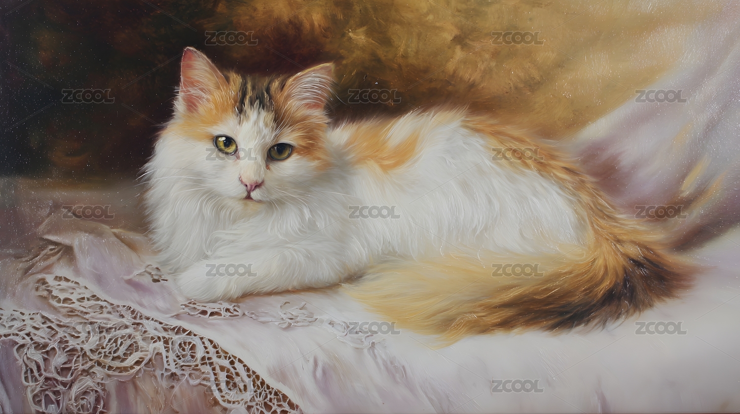 可爱猫咪凝视蕾丝 布艺光影温暖